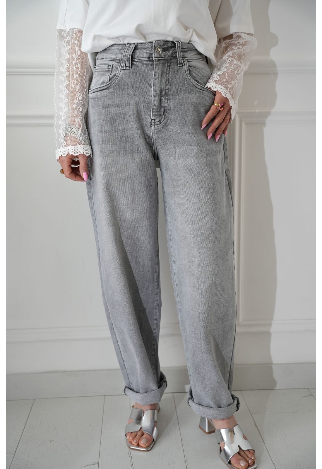 Graue Jeans für Damen. Große Taschen an den Seiten. Zwei aufgesetzte Taschen vorne. Fünf Gürtelschlaufen. Sehr geschmeidig und angenehm. Ein Bestseller. Zusammensetzung: 97 % Baumwolle. 3 % Elasthan. Das Model trägt Größe XS und ist 160 cm groß.