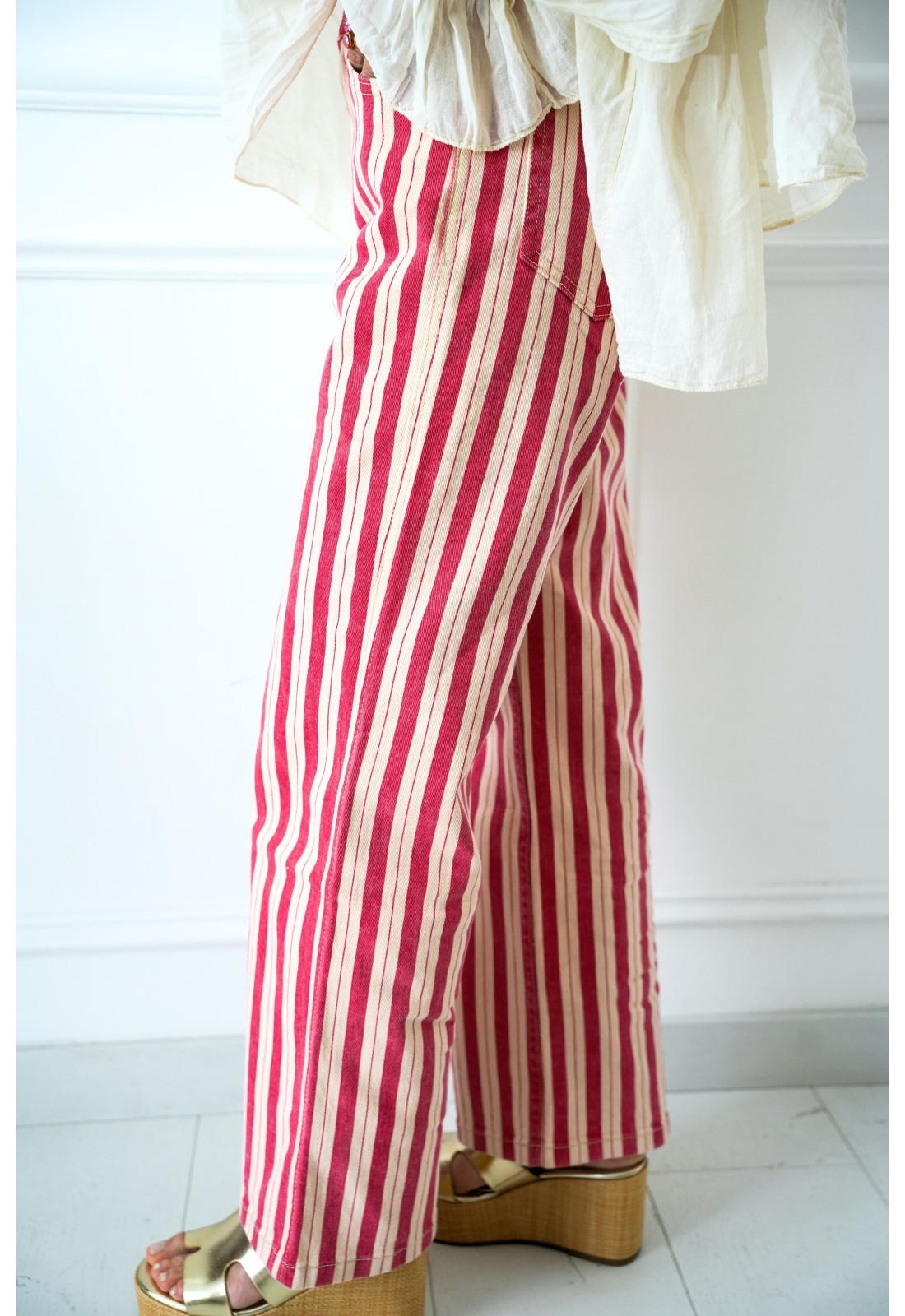 Wählen Sie einen mühelosen Stil mit der ASTRID rot gestreiften Hose. Diese auffällige Hose verfügt über einen klassischen roten Streifen und verleiht Ihrer Garderobe einen Hauch von Farbe. Wir haben es für ultimativen Komfort und Vielseitigkeit entworfen – perfekt für lässige Tage sowie elegantere Looks.