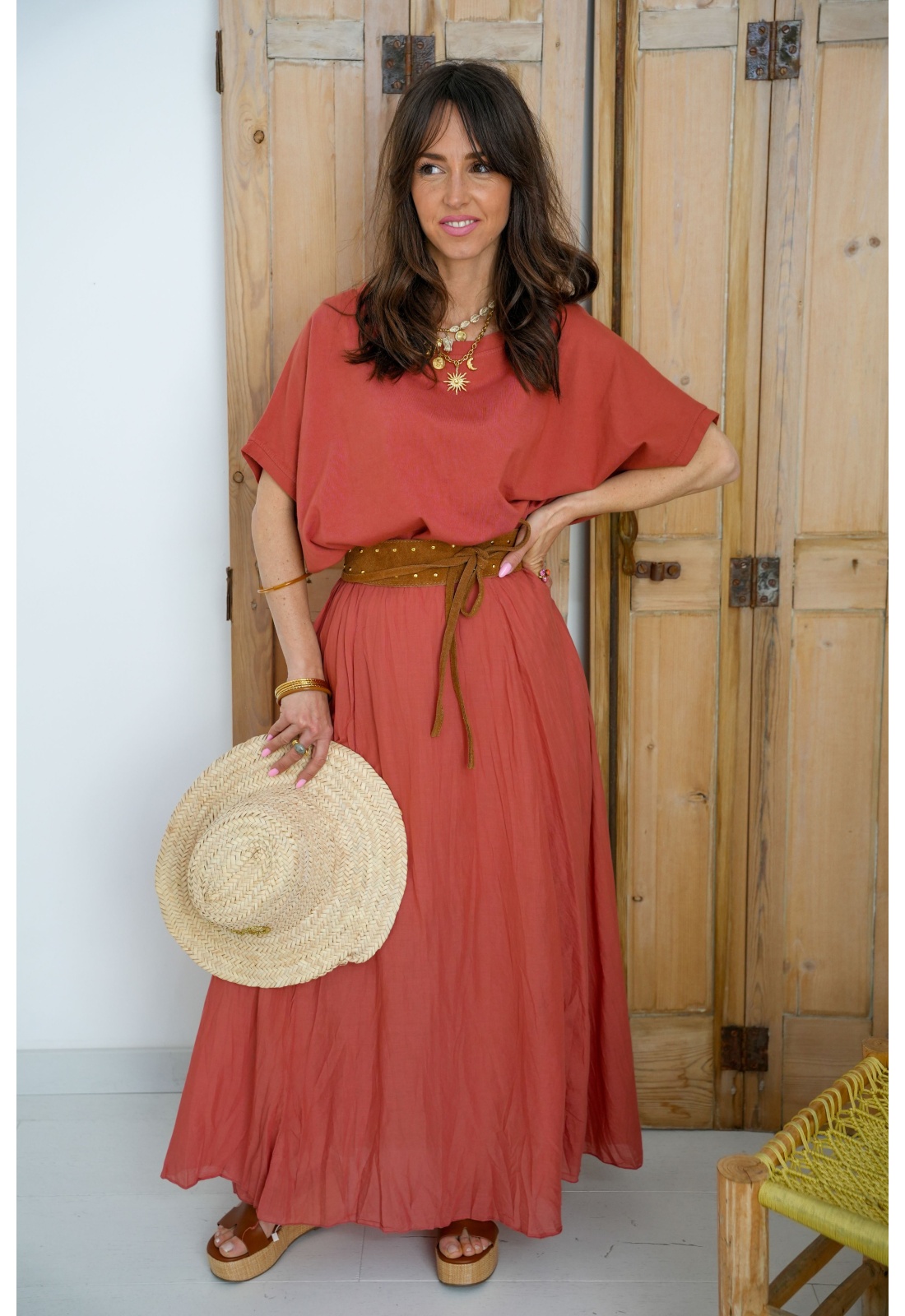 Wählen Sie einen mühelosen Stil mit dem langen rostfarbenen AVA-Rock . Dieser atemberaubende rostfarbene Rock fällt wunderschön und bietet eine bequeme, schmeichelnde Passform für alle Körperformen