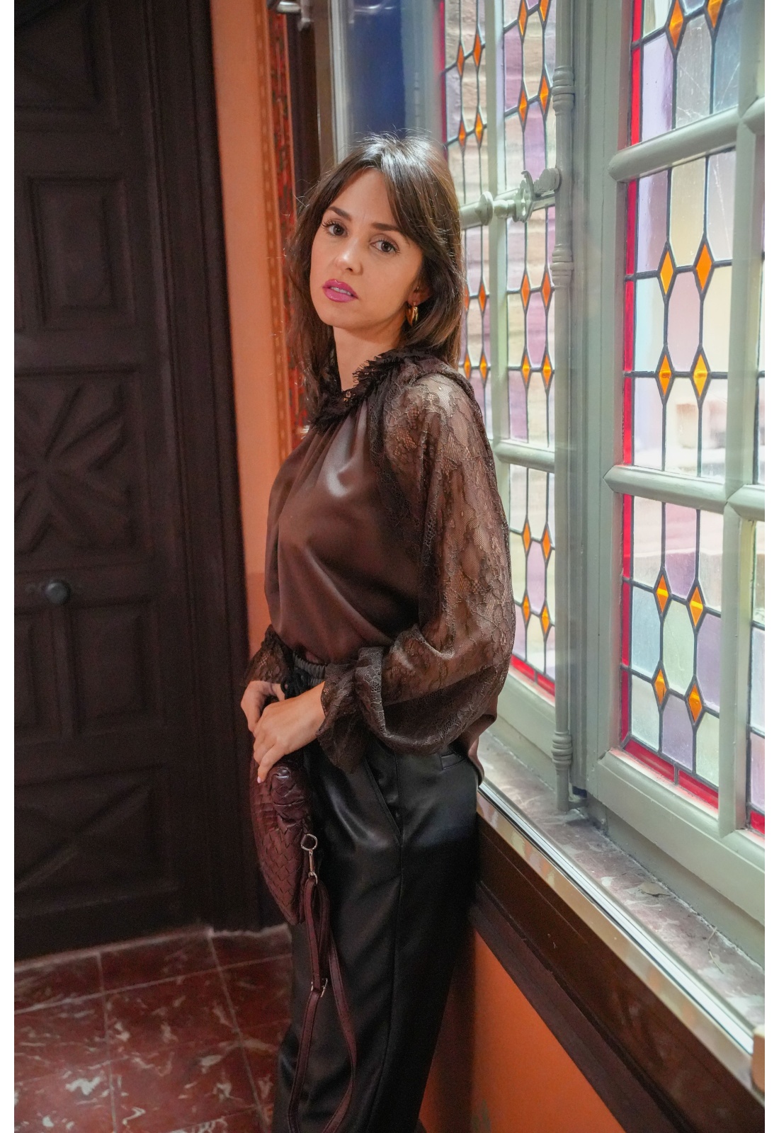 FARFALA MISSTA DENTEL MARRON BLOUSE