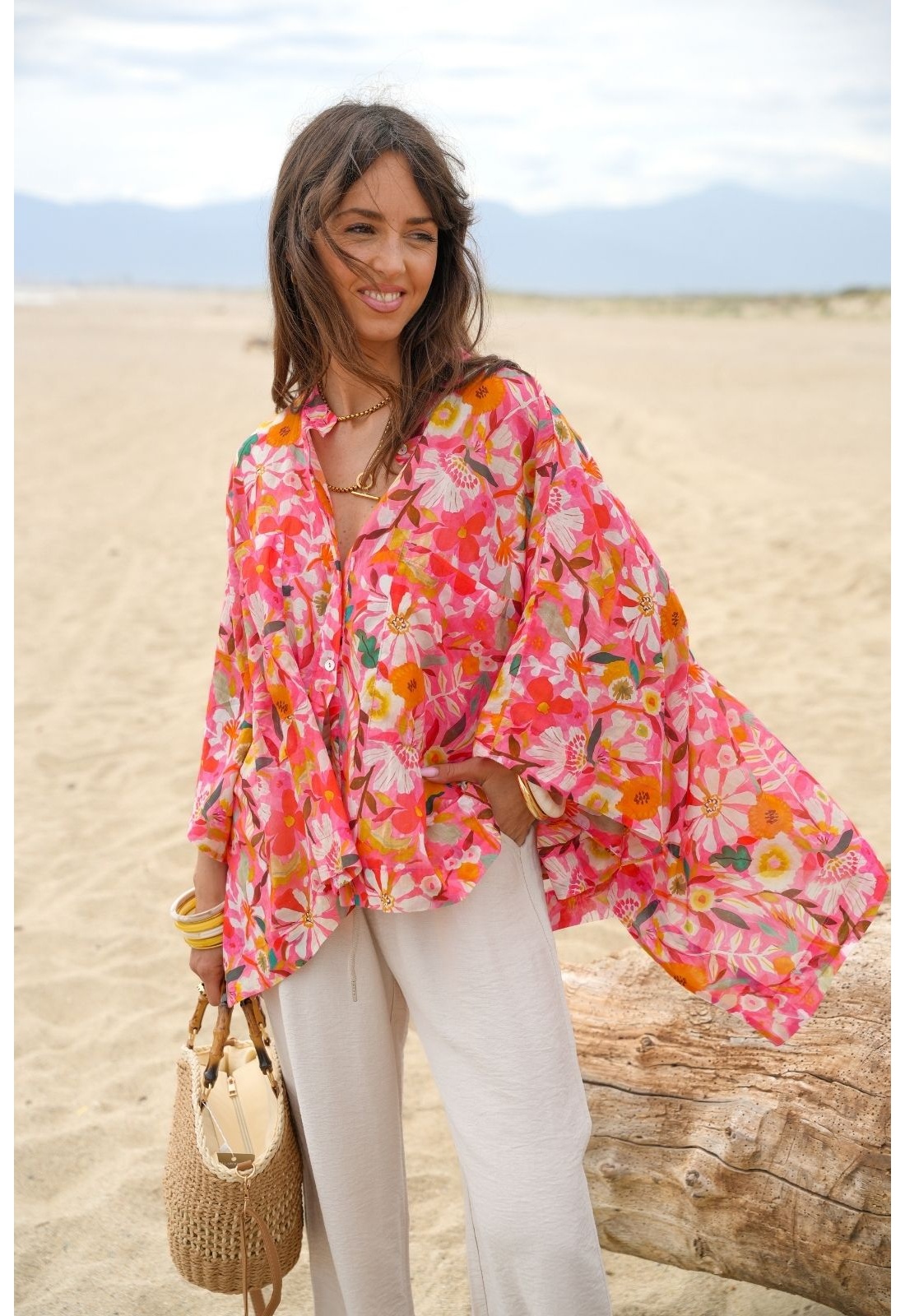 BLUSA DE FLOR DE SALMÓN: Blusas florales chic para ti