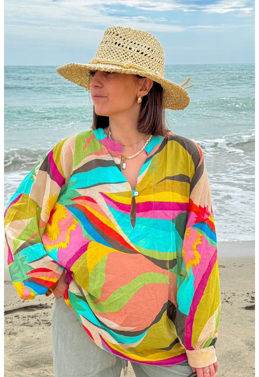 Adopta un look bohemio con la blusa Herbal Banditas MIRABOLA . Esta blusa de diseño único presenta un estampado cautivador y un ajuste relajado, perfecta para agregar un toque de estilo bohemio a tu guardarropa. Diseñado para brindar comodidad y versatilidad, te imaginamos combinándolo con jeans de cintura alta o faldas fluidas. La talla 'TU' ofrece una silueta universalmente favorecedora.