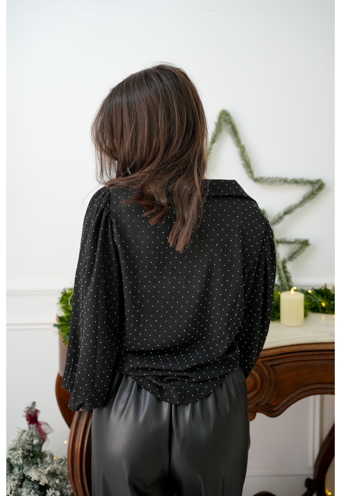 flamant rose STRASS NOIR CHEMISIER