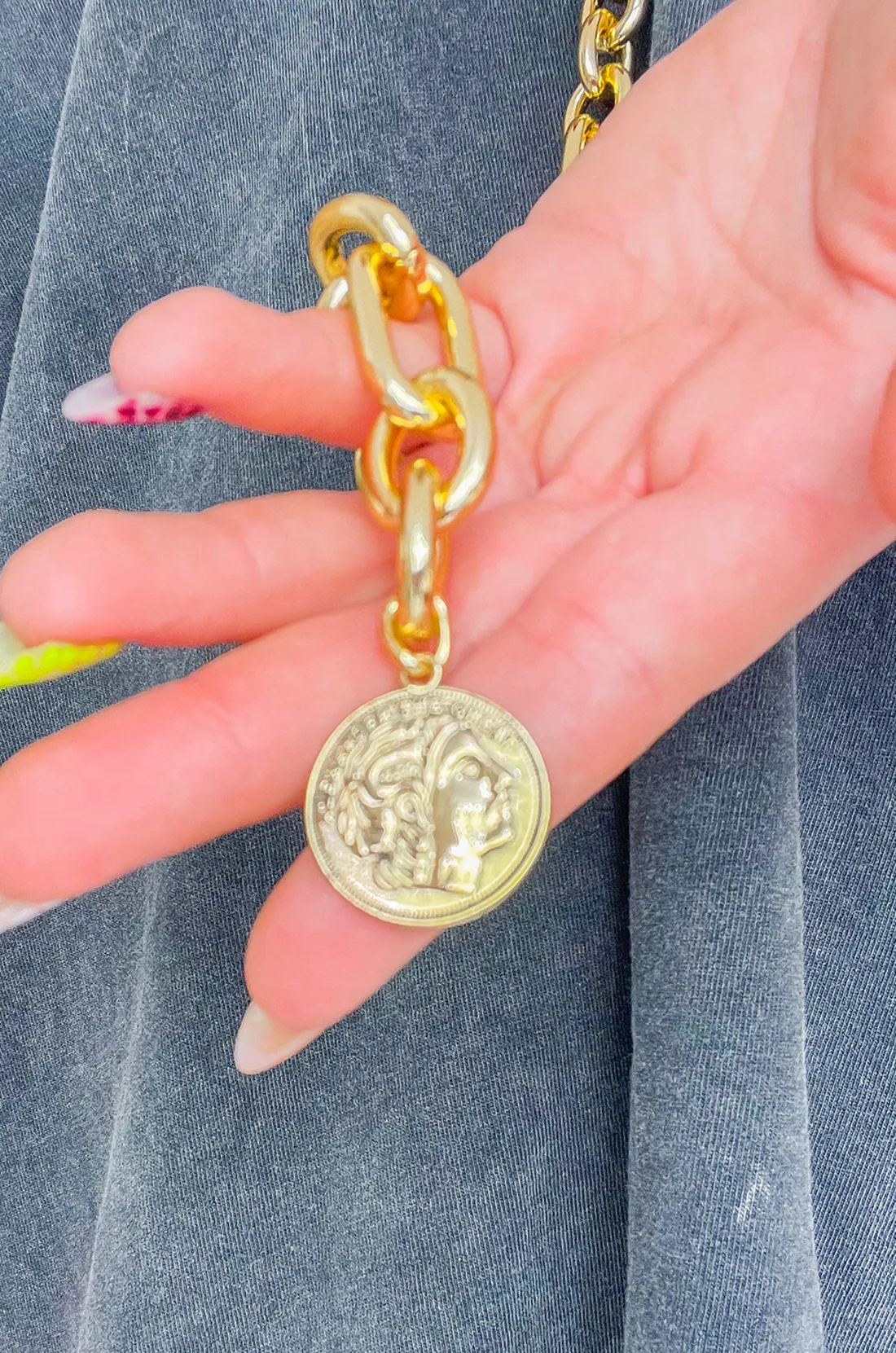 Ceinture pour femmes.En chaine.De couleur dorée.Avec médaillon.Réglable comme vous le souhaitez.
