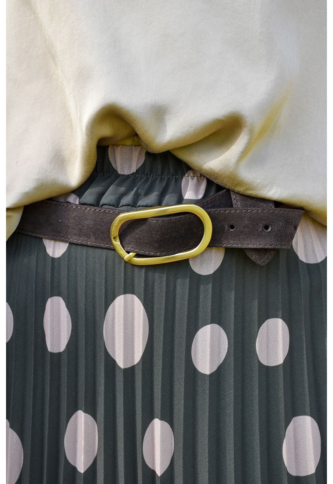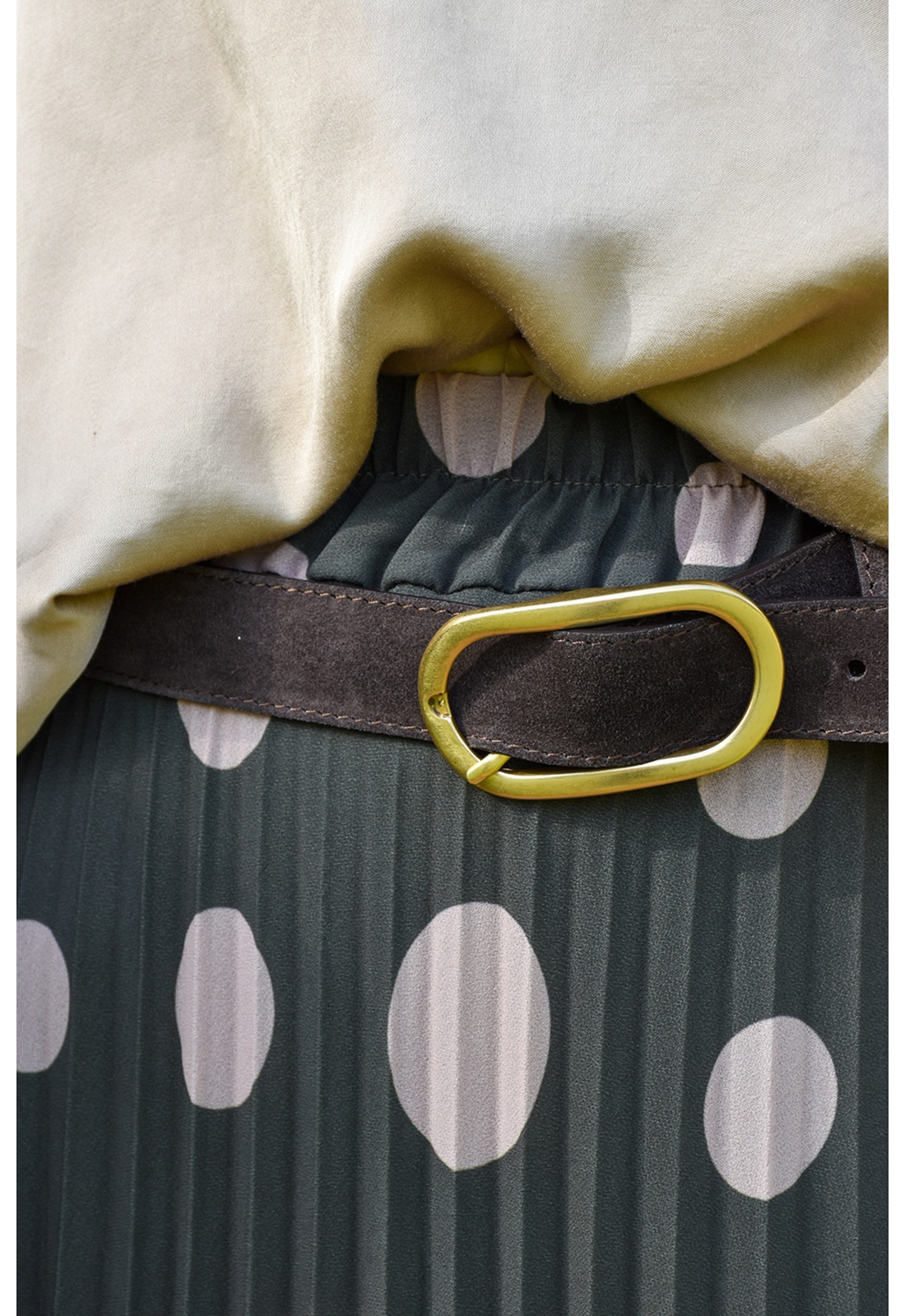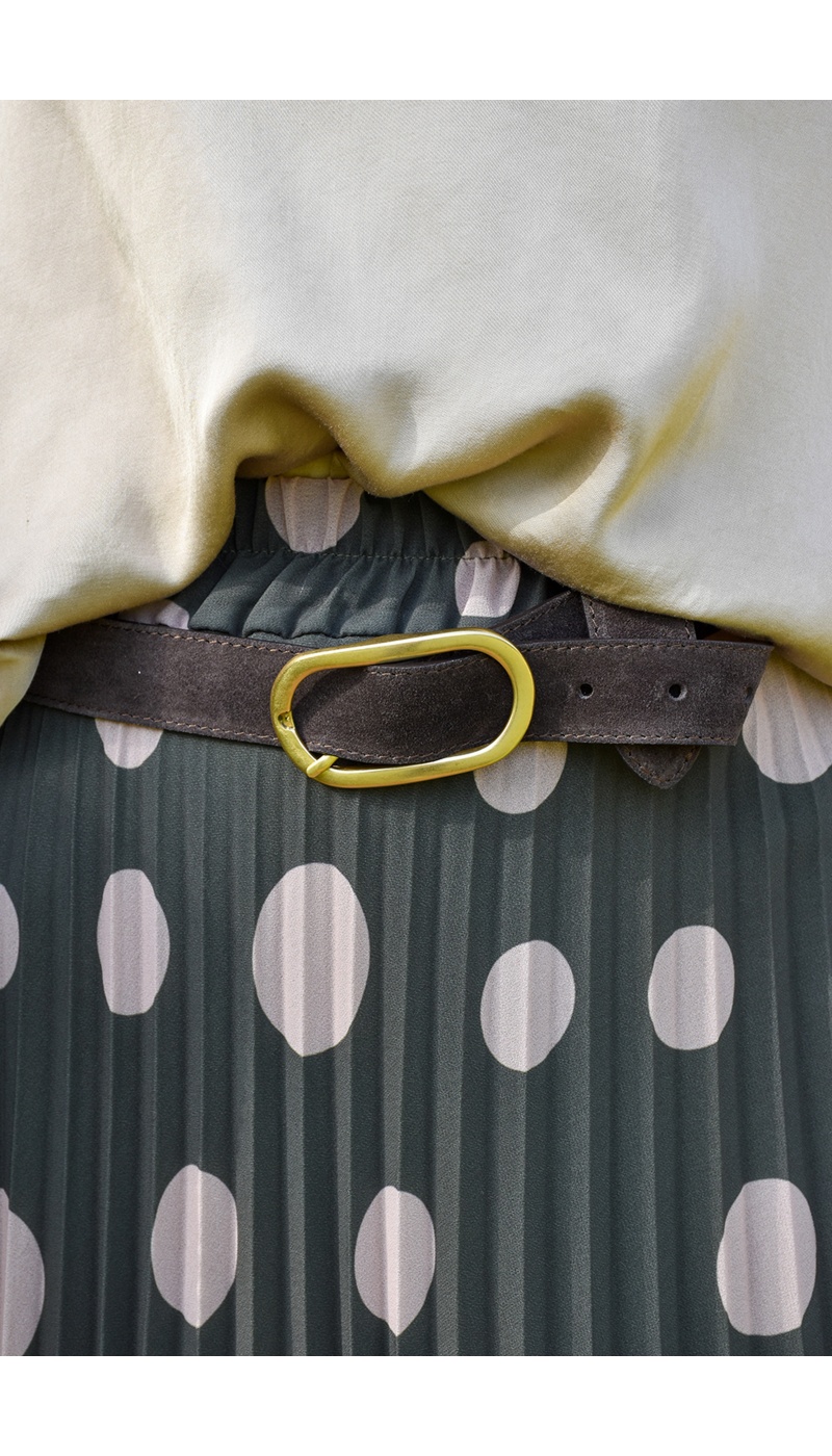 Ceinture pour femmes.De couleur chocolat.En daim.Bouclerie dorée.Ajustable sur plusieurs trous.