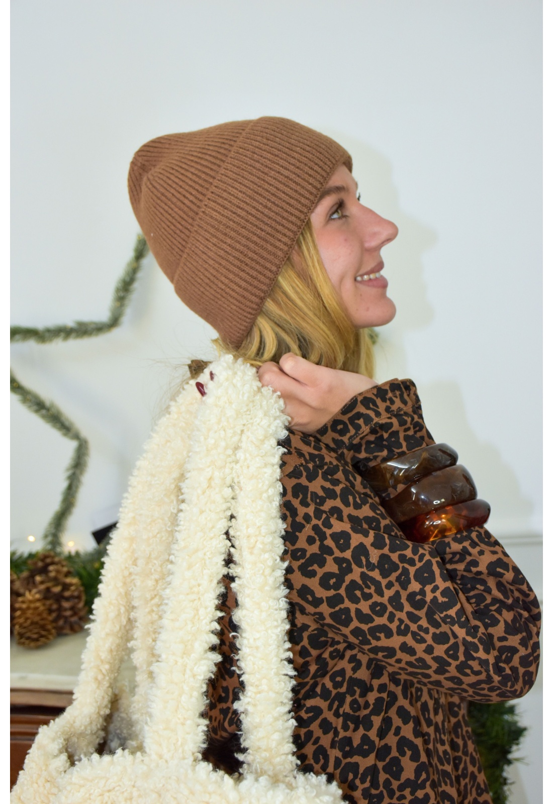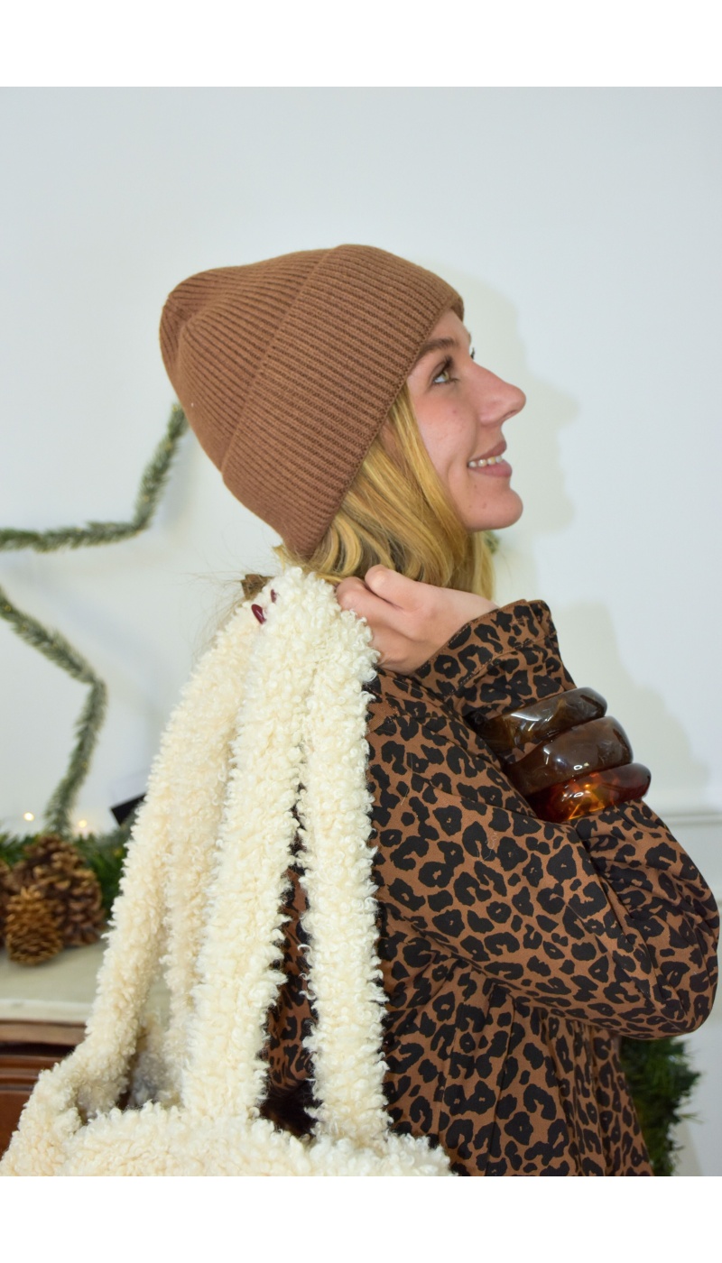 Bonnet femme camel.