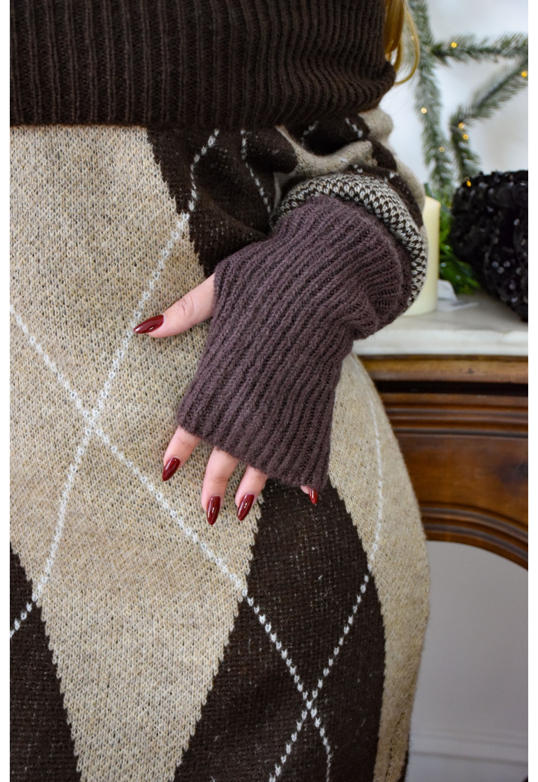 Mitaines pour femmes.Longues.De couleur chocolat.Côtelées.Composition :57% Acrylique.29% Polyamide.14% Laine.Fabriquées en Italie.Nos mitaines sont tailles uniques.