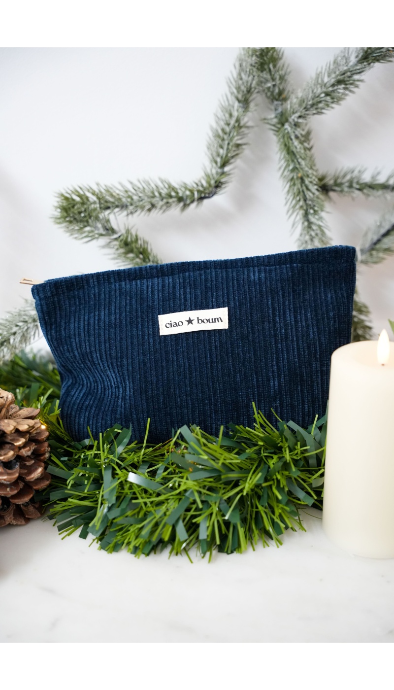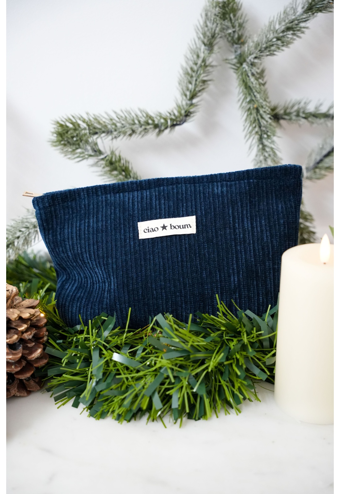 PochetteDe couleur marineEn velours côteléEtiquette " Ciao Boum "Se ferme par zip doréComposition :100% PolyesterDimension :28 x 20cm