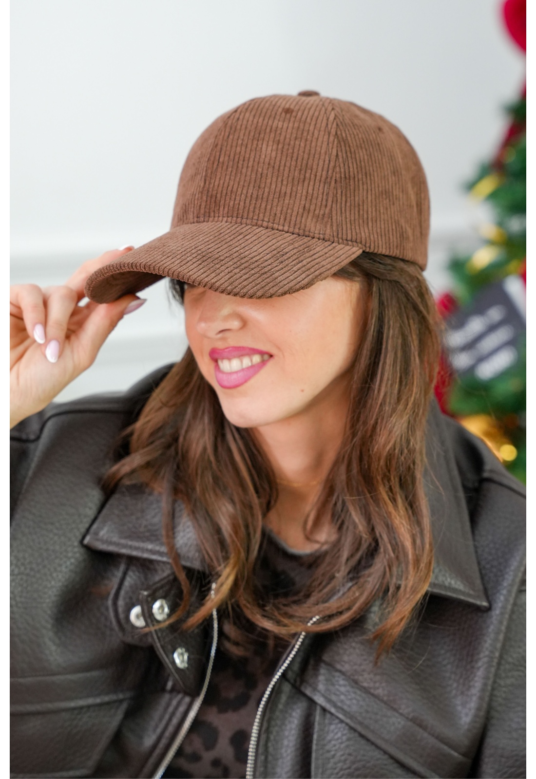 Casquette pour femmes.De couleur marron.En velours côtelé.Réglable à l'arrière.Composition :100% Polyester.