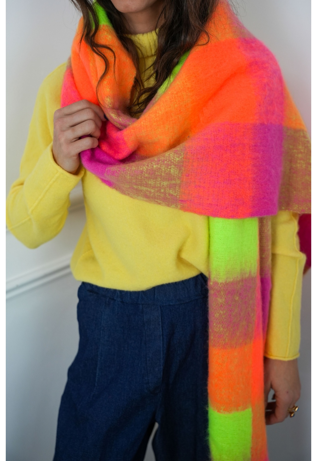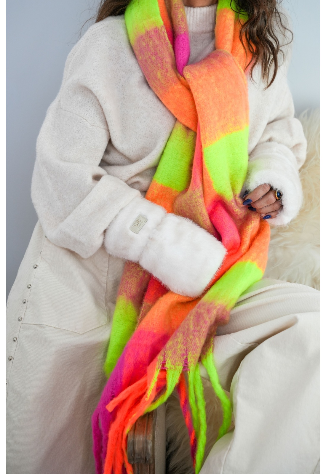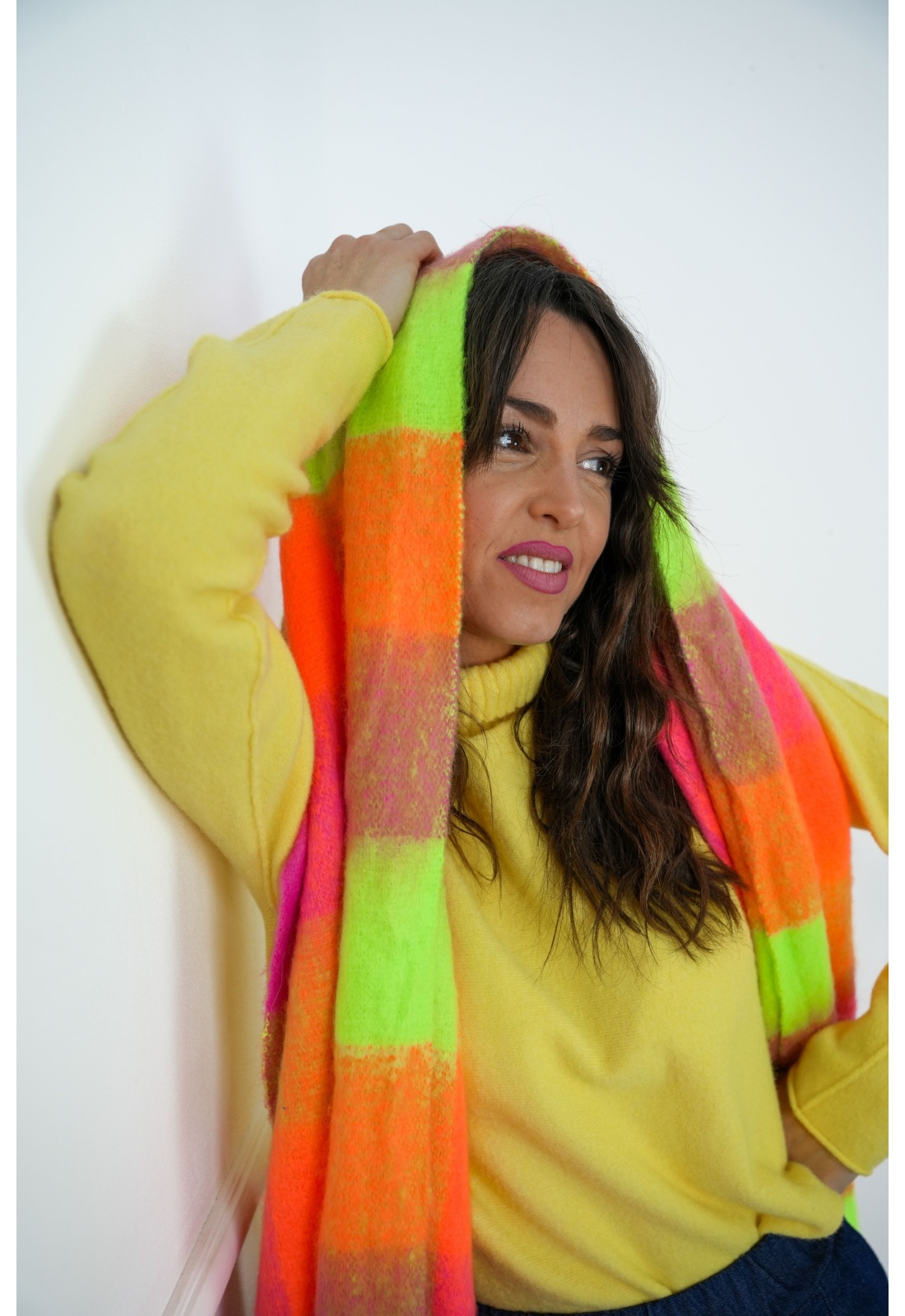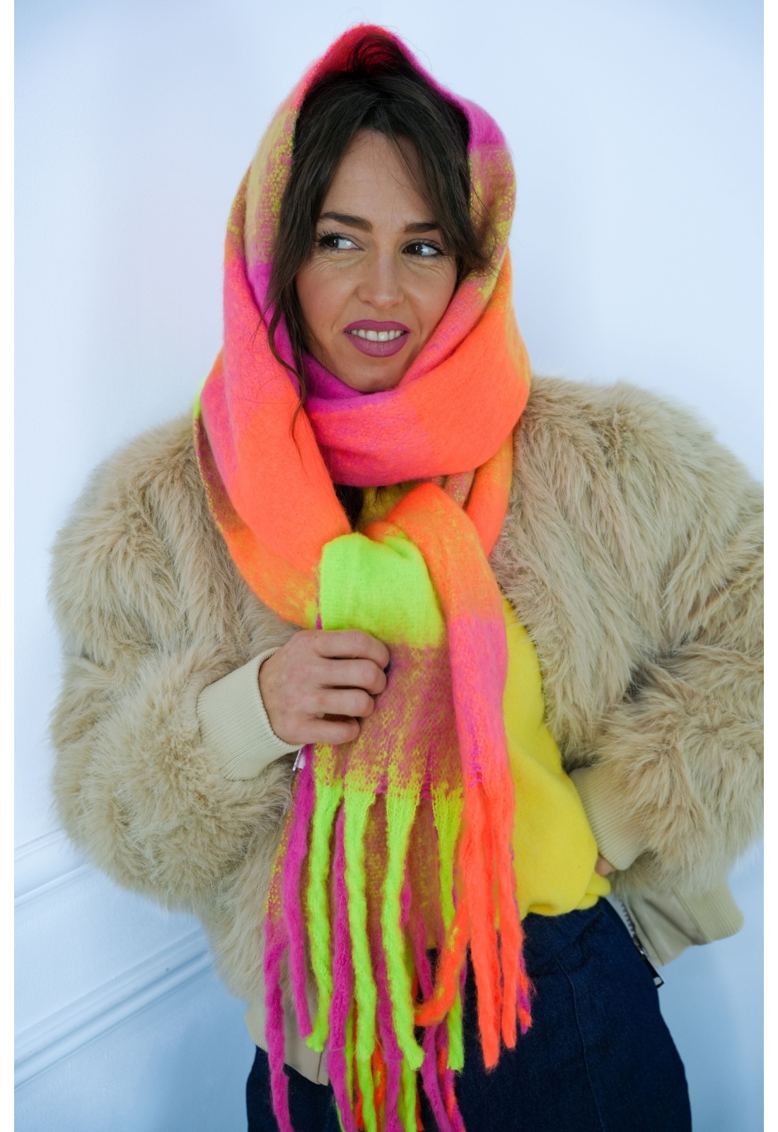 Echarpe pour femmes.Multicolore.A carreaux.En maille douce.Avec franges sur les côtés.Composition :100% Polyester.