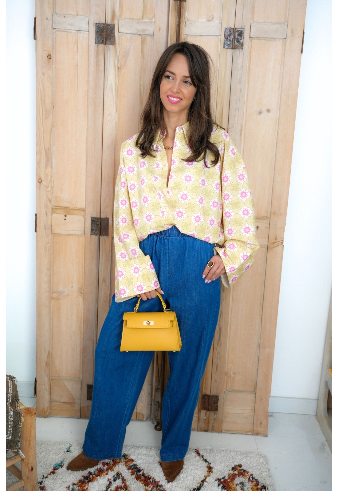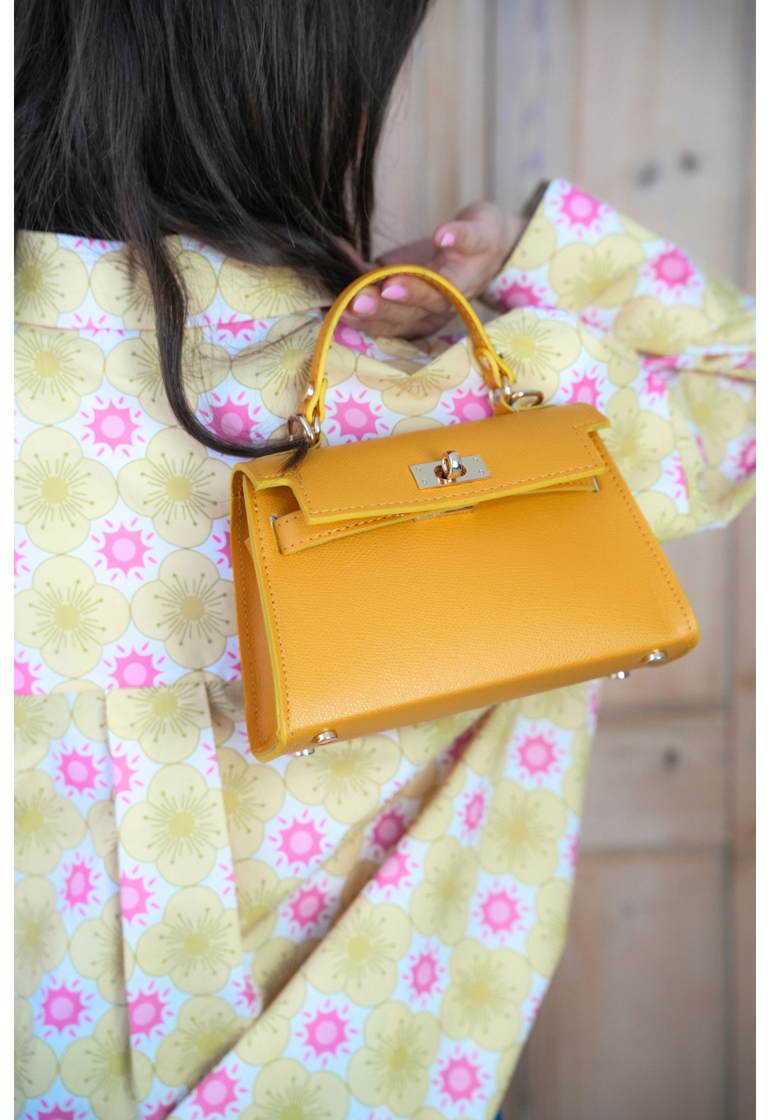 Sac pour femmes.De couleur jaune.Cuir grain.Bouclerie dorée.Bandoulière amovible et réglable.Poche zippée intérieure.Fermeture par rabat avec bouton.Composition :100% Cuir.Fabriqué en Italie.Dimension :Longueur : 21.5cmHauteur : 14cm