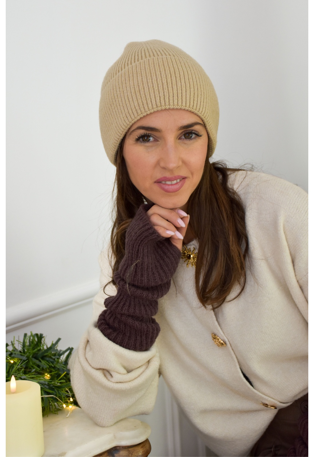 Bonnet femme beige.En maille. Extensible et taille unique.