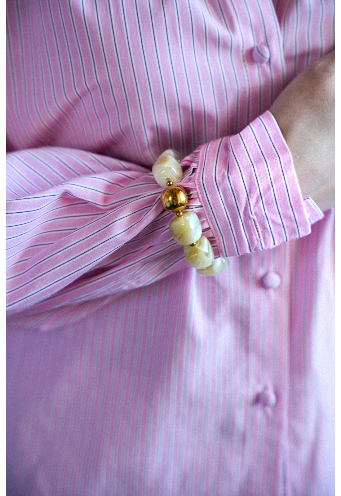 Bracelet pour femmes.En perle.Avec effet marbré.De couleur beige et doré.Il est élastique.