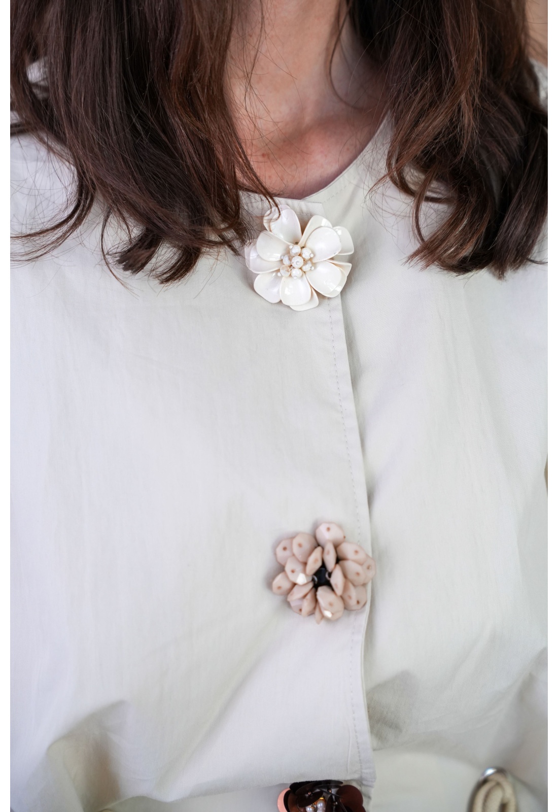 Chic casual, féminin avec une touche originale grâce aux fleurs.