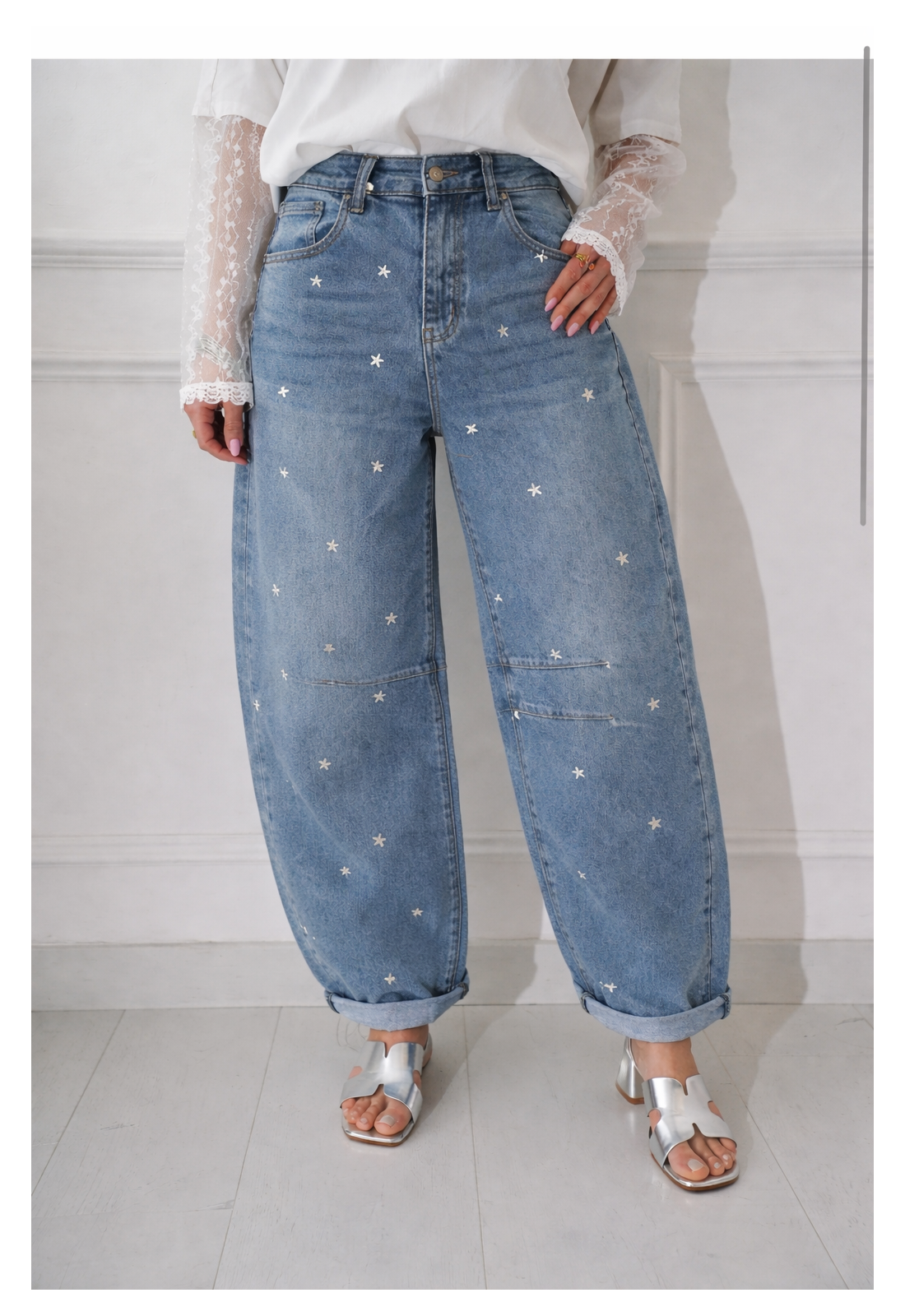 Jean denim bleu pour femme.