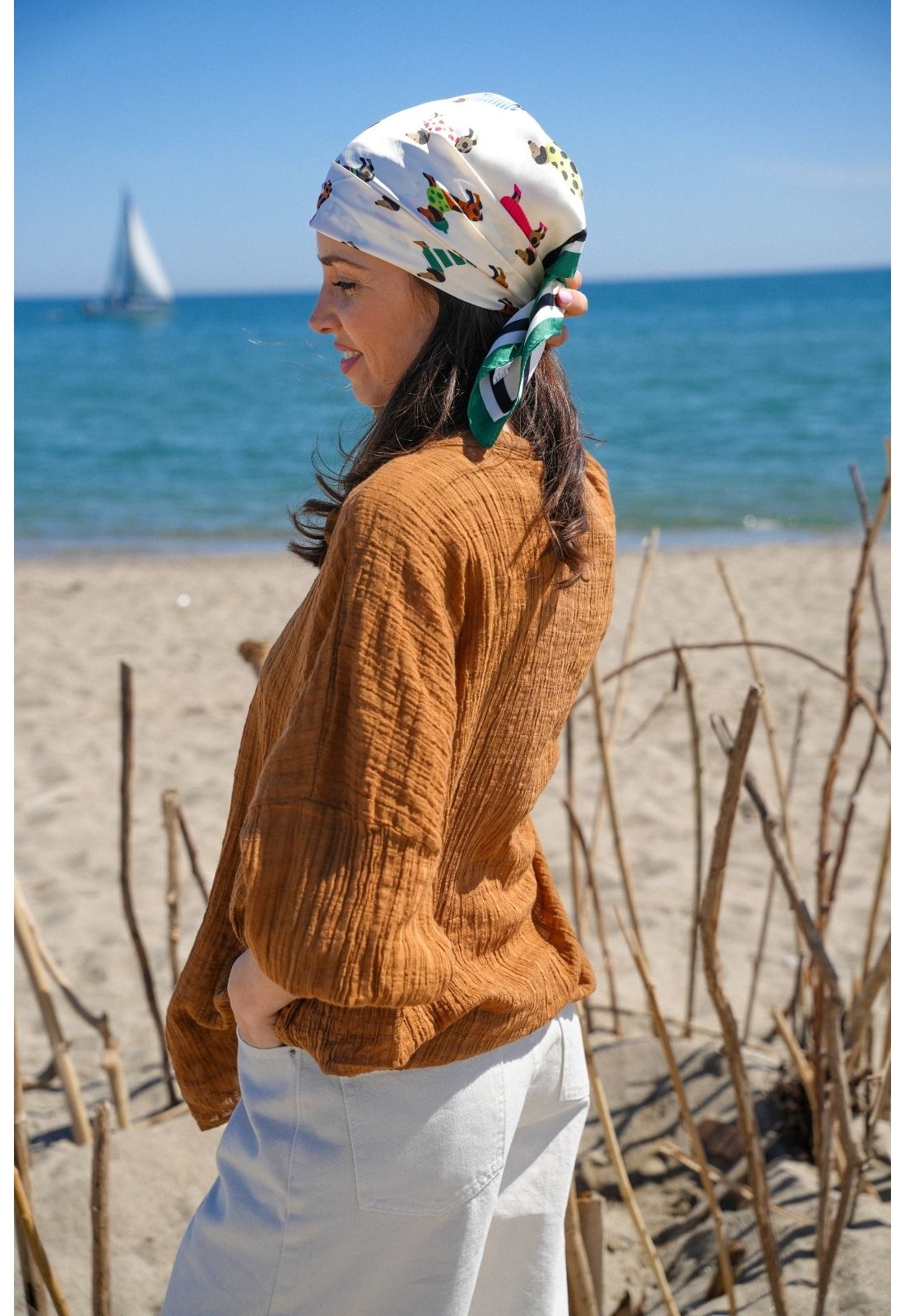 Adoptez un style sans effort avec la Blouse Fluide Camel WASP. Ce chemisier magnifiquement drapé offre une coupe décontractée et fluide, parfaite pour toutes les occasions. Confectionné dans une teinte camel polyvalente, il se transforme facilement du jour au soir – associez-le à un jean pour un look décontracté ou rehaussez-le avec un pantalon habillé.