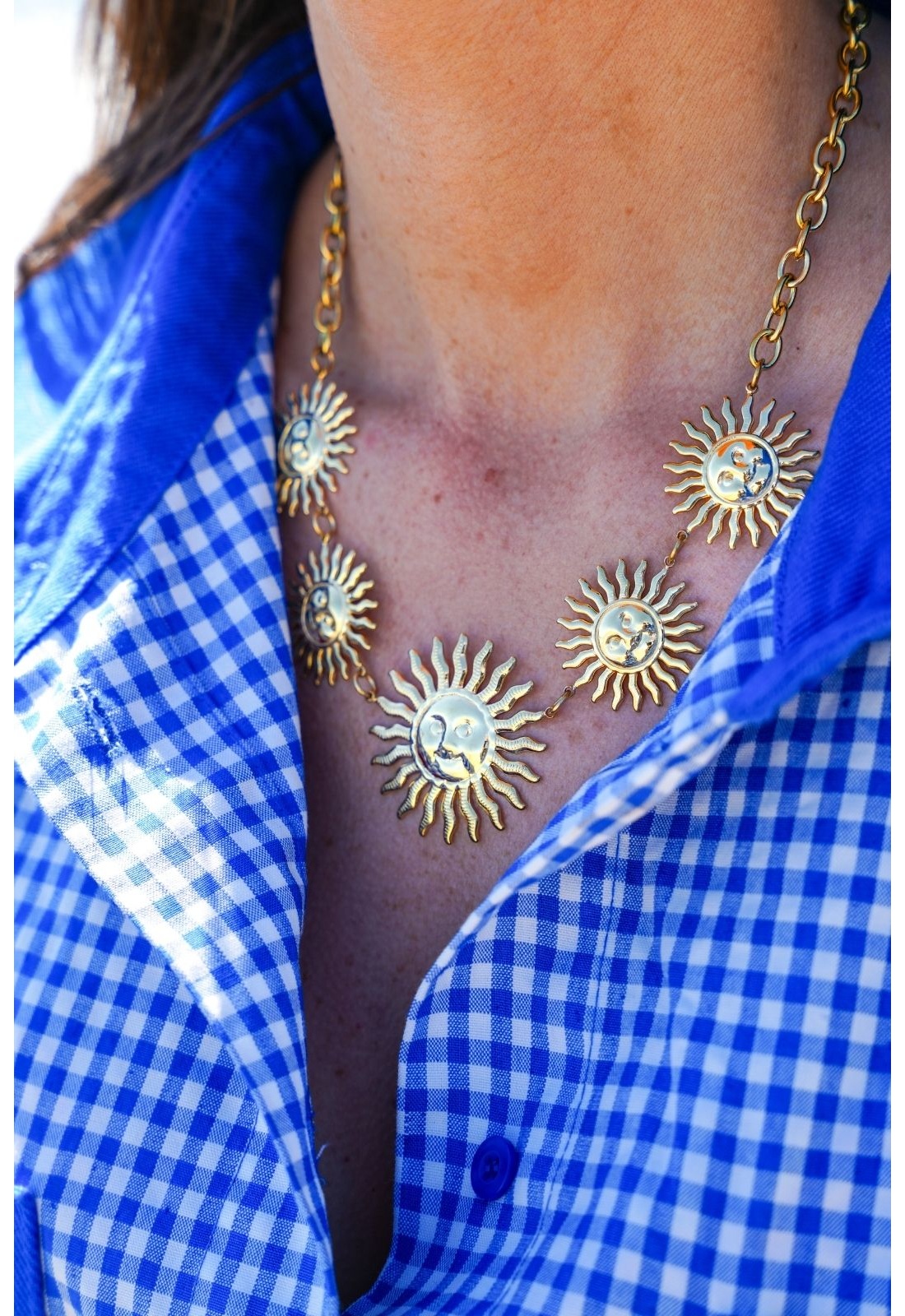 Collier pour femmes.De couleur doré.Avec medailles soleils.Ajustable sur plusieurs niveaux.