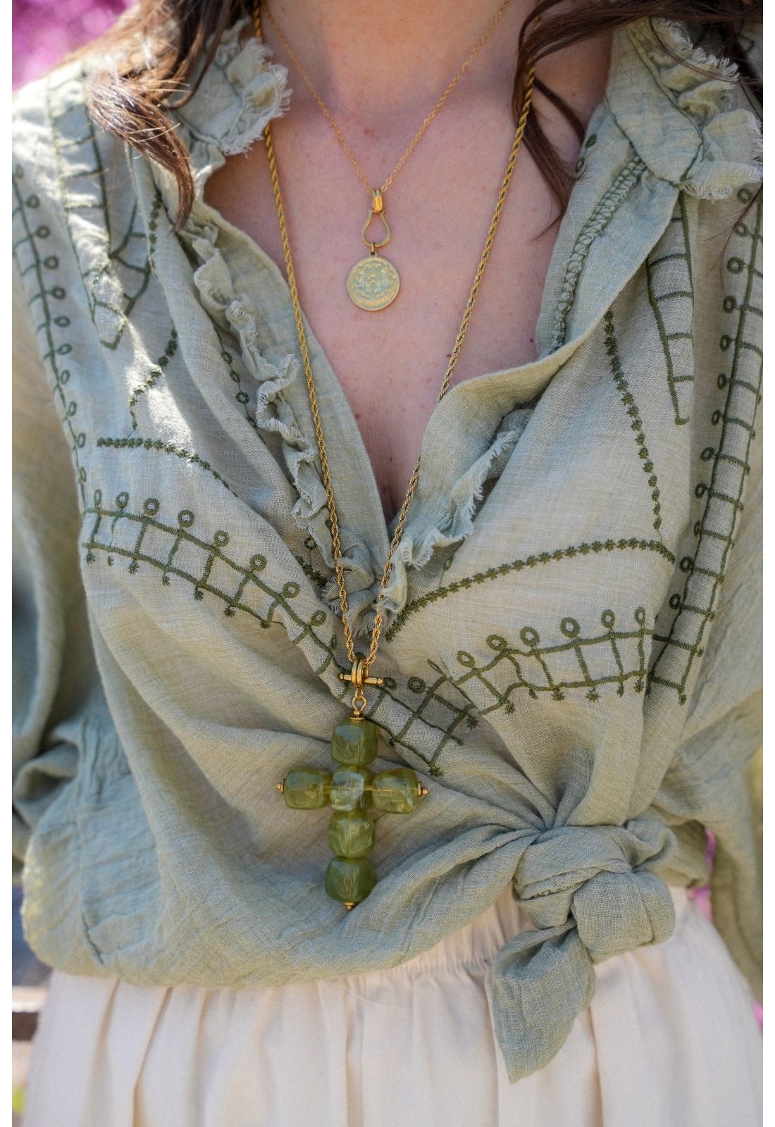 Collier long pour femmes.De couleur doré.Maille Jaseron.Avec grosse pampille œil.Réglable comme vous le souhaitez.Composition :100% Acier Inoxydable.