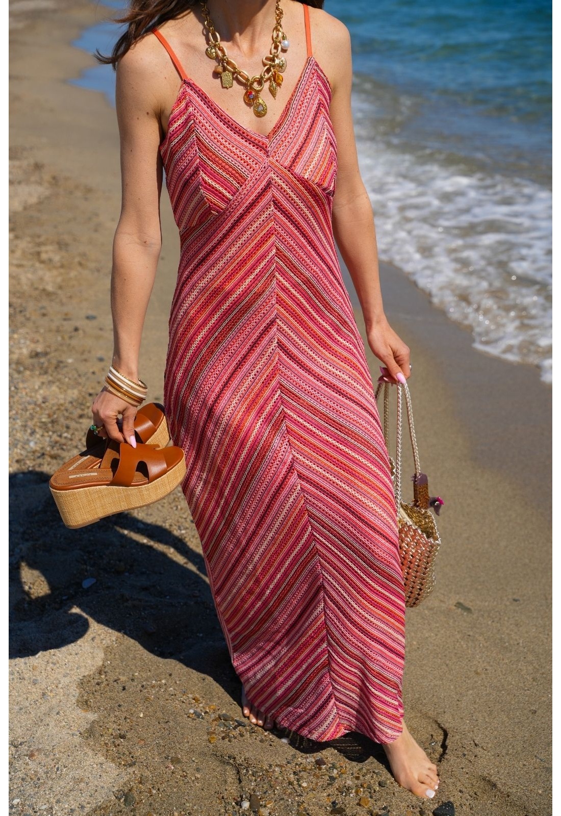 Robe longue.Macramé losange.Doublée.Coupe débardeur.Col V.Bretelles réglables. Composition:Fabriqué en Italie98% Polyester.2% Elasthanne.Le mannequin porte une taille unique et mesure 160 cm.