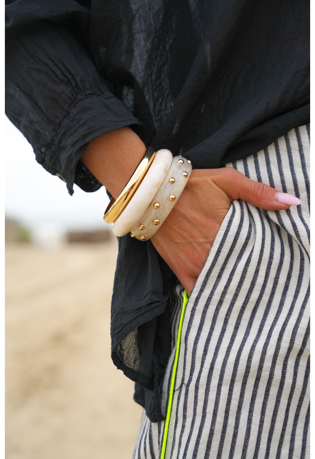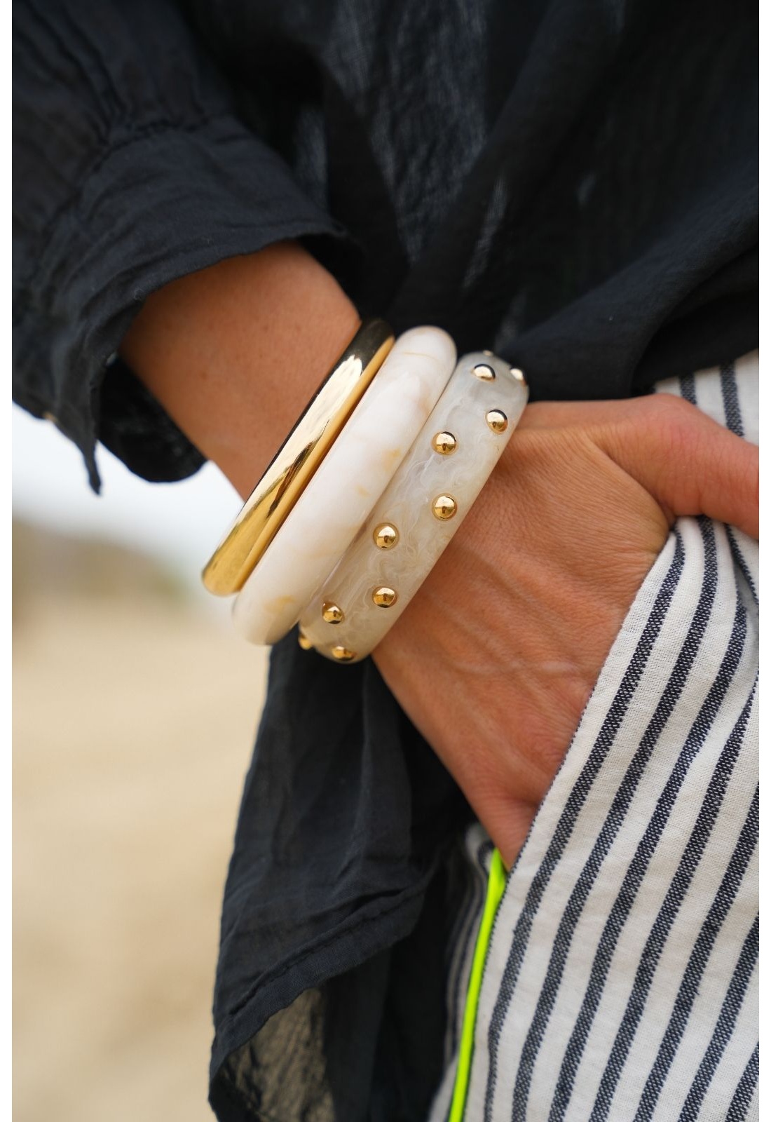 Bracelets pour femmes.De couleur ivoire et doré .Effet cloutés.Set de 3 unités.