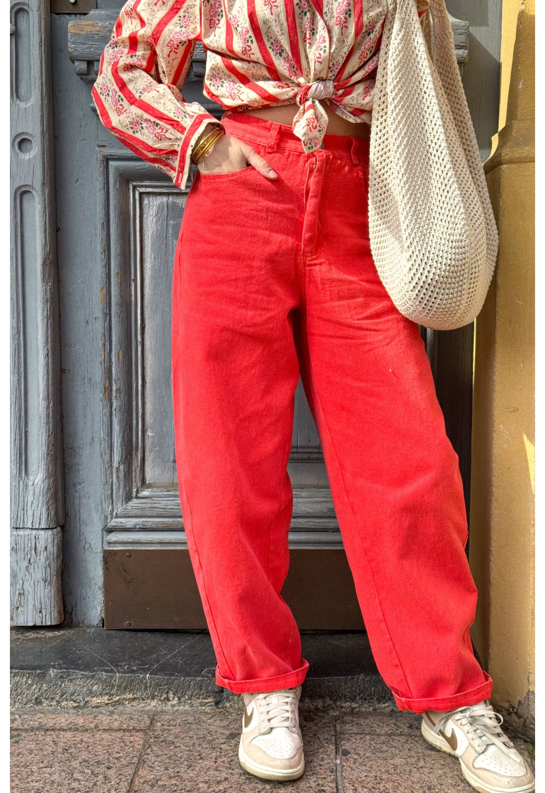 Adoptez une allure efforces avec le pantalon rose parfait pour vos journées ou vos looks de soirées. Sa coupe ample et sa matière 100 % coton offrent un confort absolu tout en restant tendance.