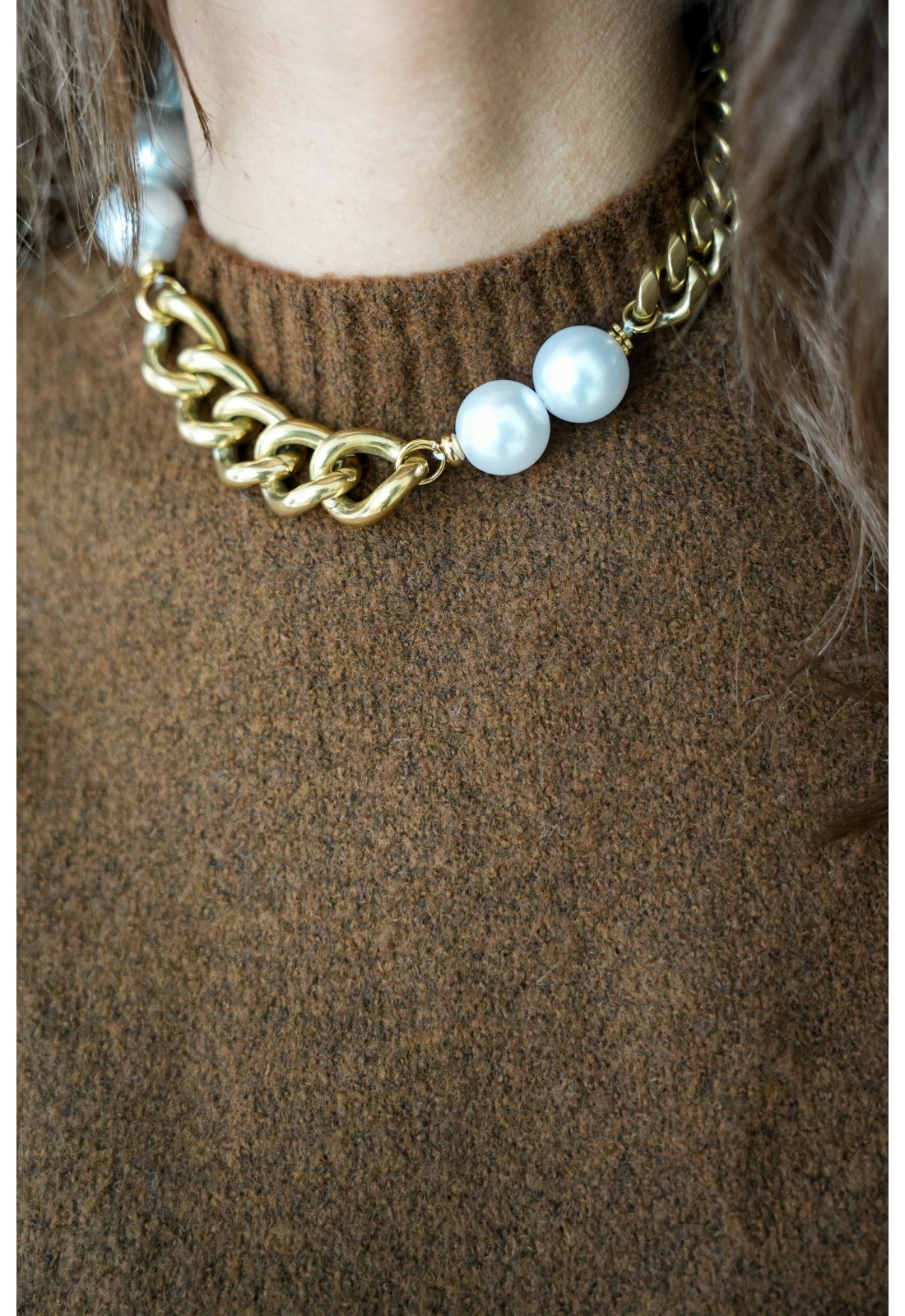 Collier pour femmes.De couleur doré.En grosses perles nacrées. Fermoir doré.Ajustable.