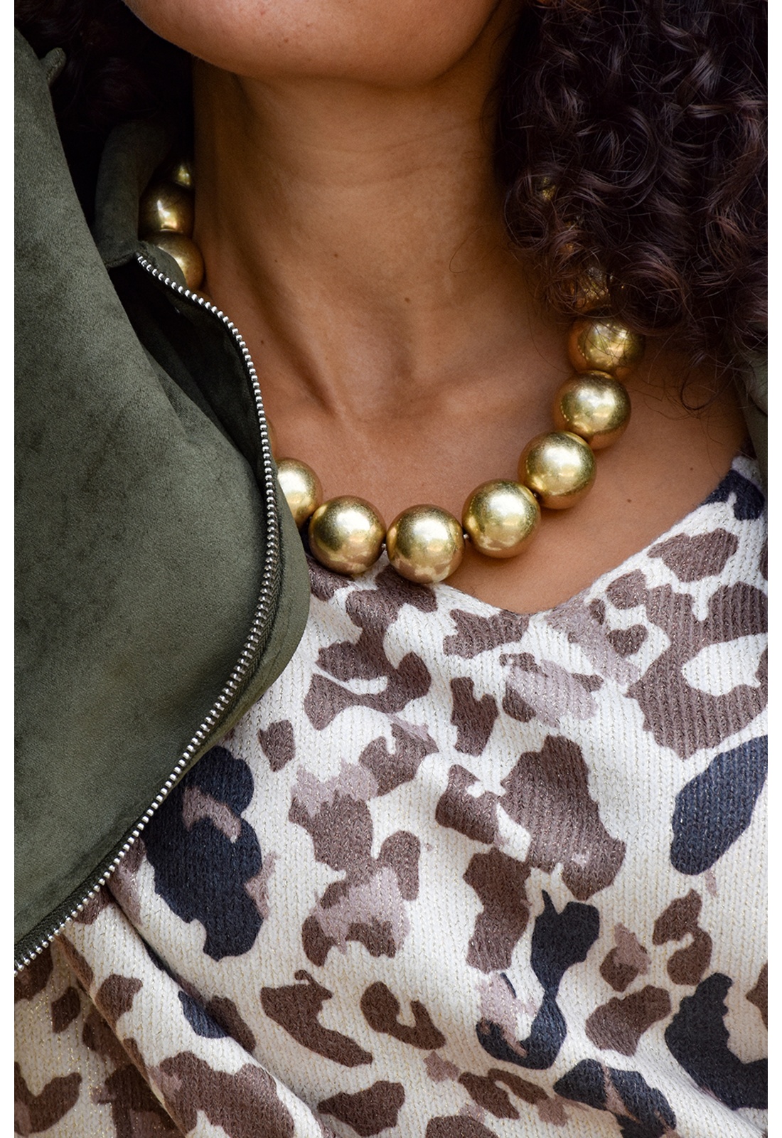 Collier pour femmes.De couleur doré.En grosse perle.Fermoir doré.Réglable sur plusieurs niveaux