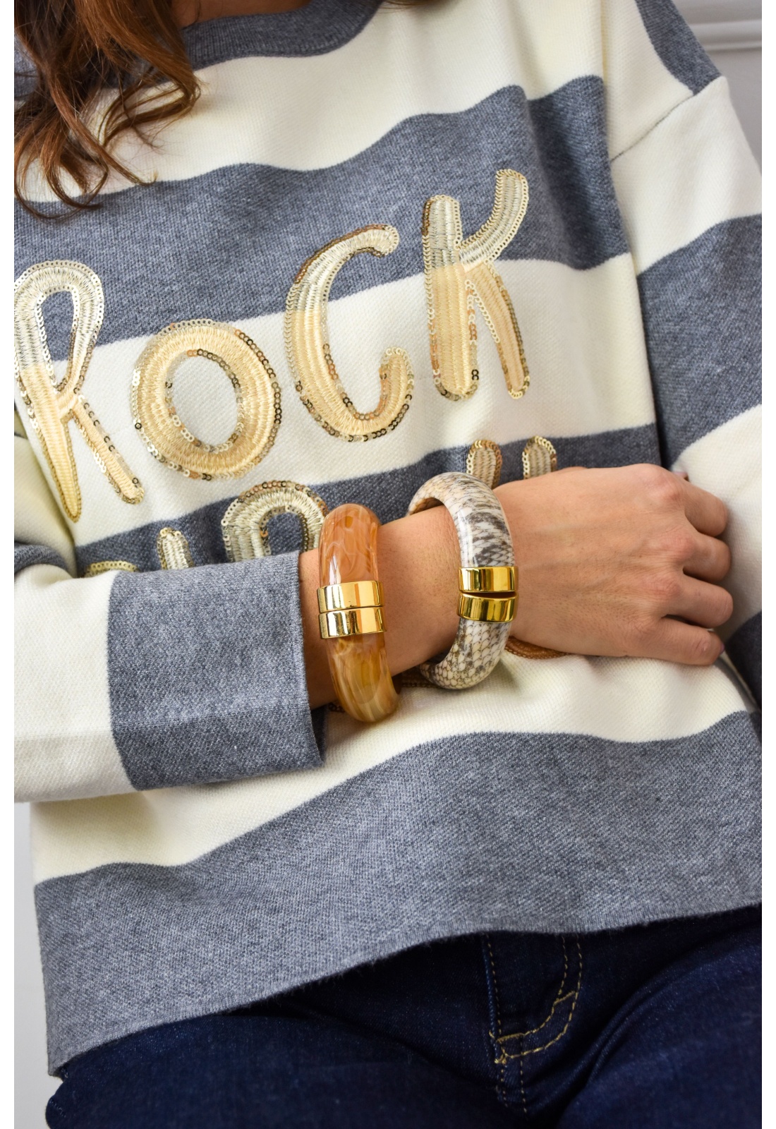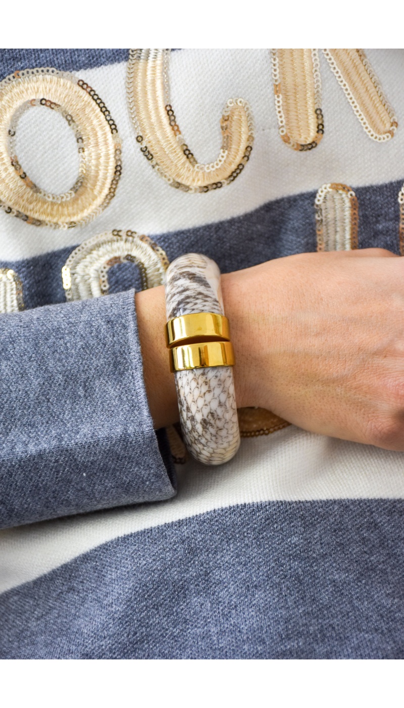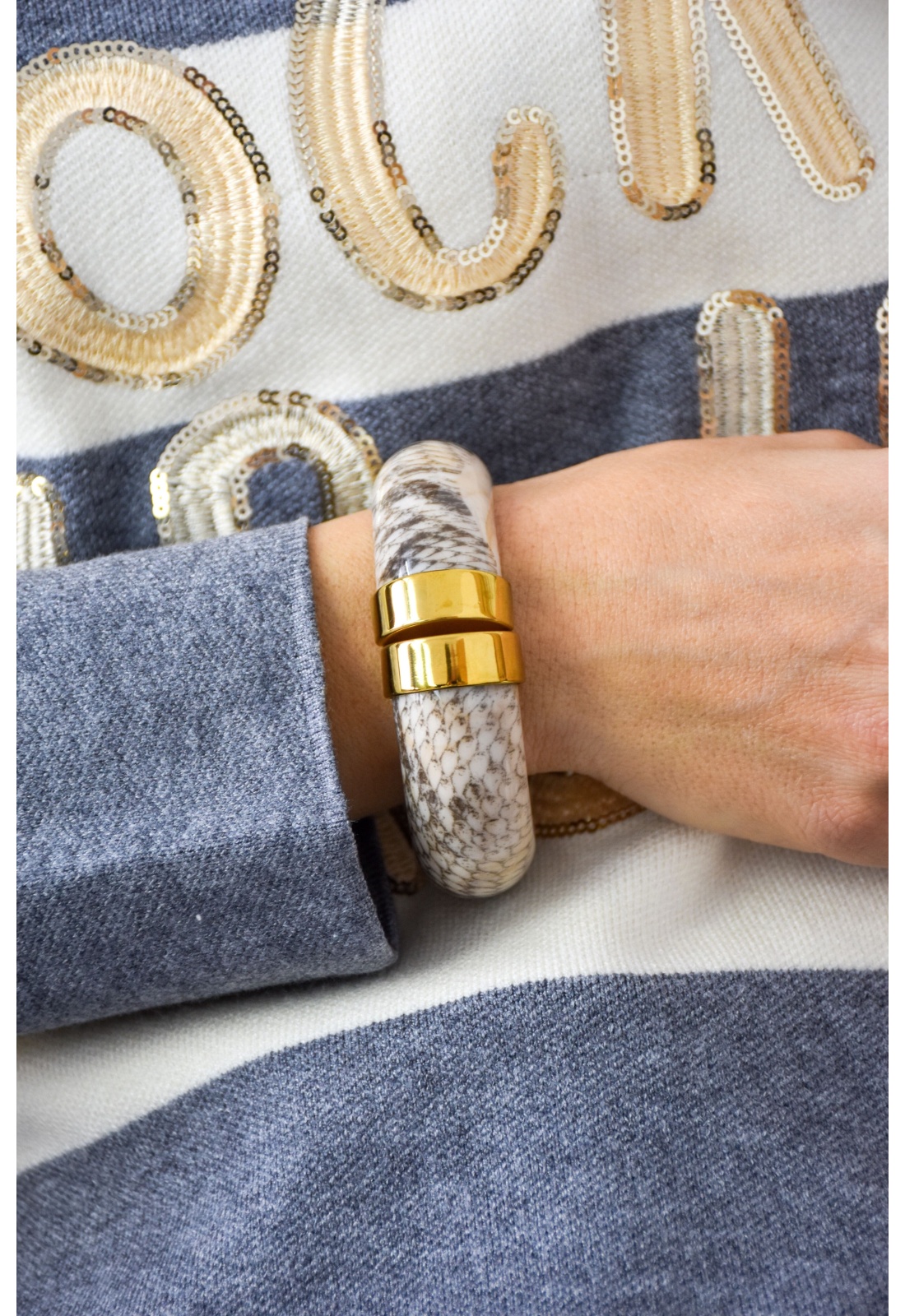 Jonc pour femmes.De couleur écru.Imprimé python.En résine.Détail doré.Fermoir à bascule.