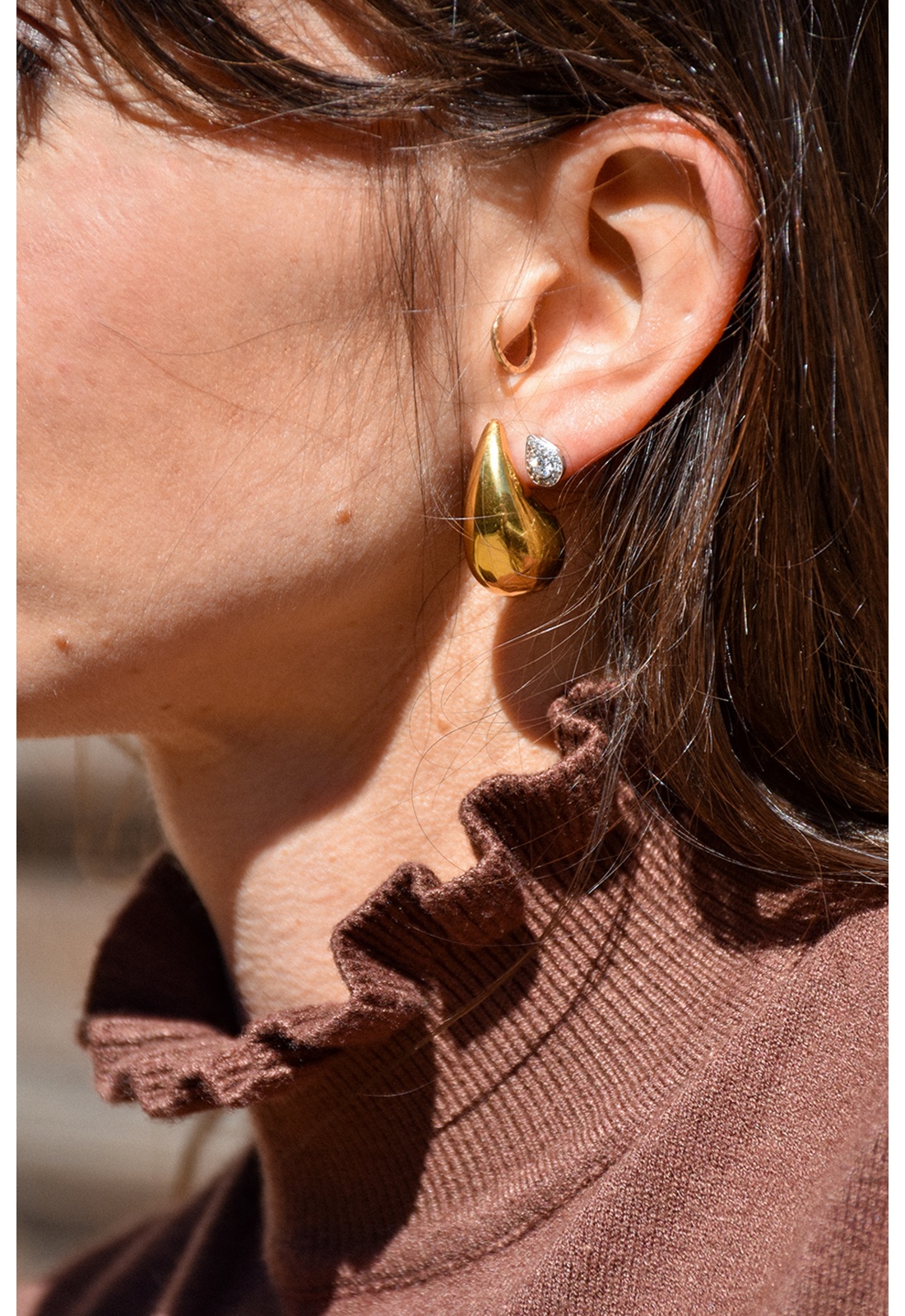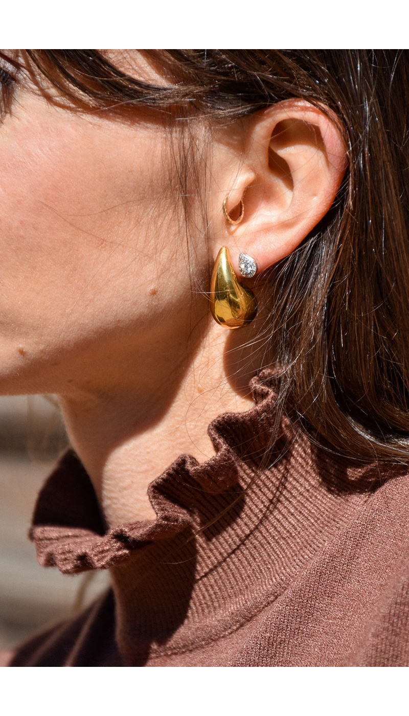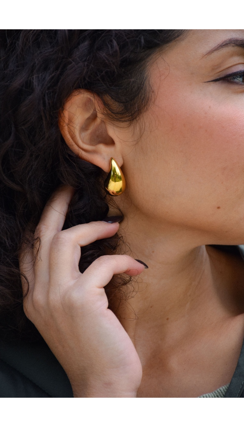 Boucles d'oreilles pour femmes.De couleur dorée.En forme de goutte.Grosse.Composition :100% Acier Inoxydable.