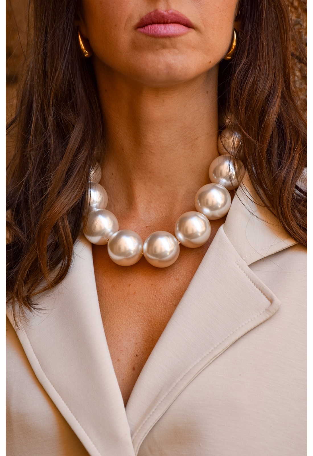 Collier pour femmes.Nacré.En grosses perles.Fermoir doré.Réglable sur plusieurs niveaux.