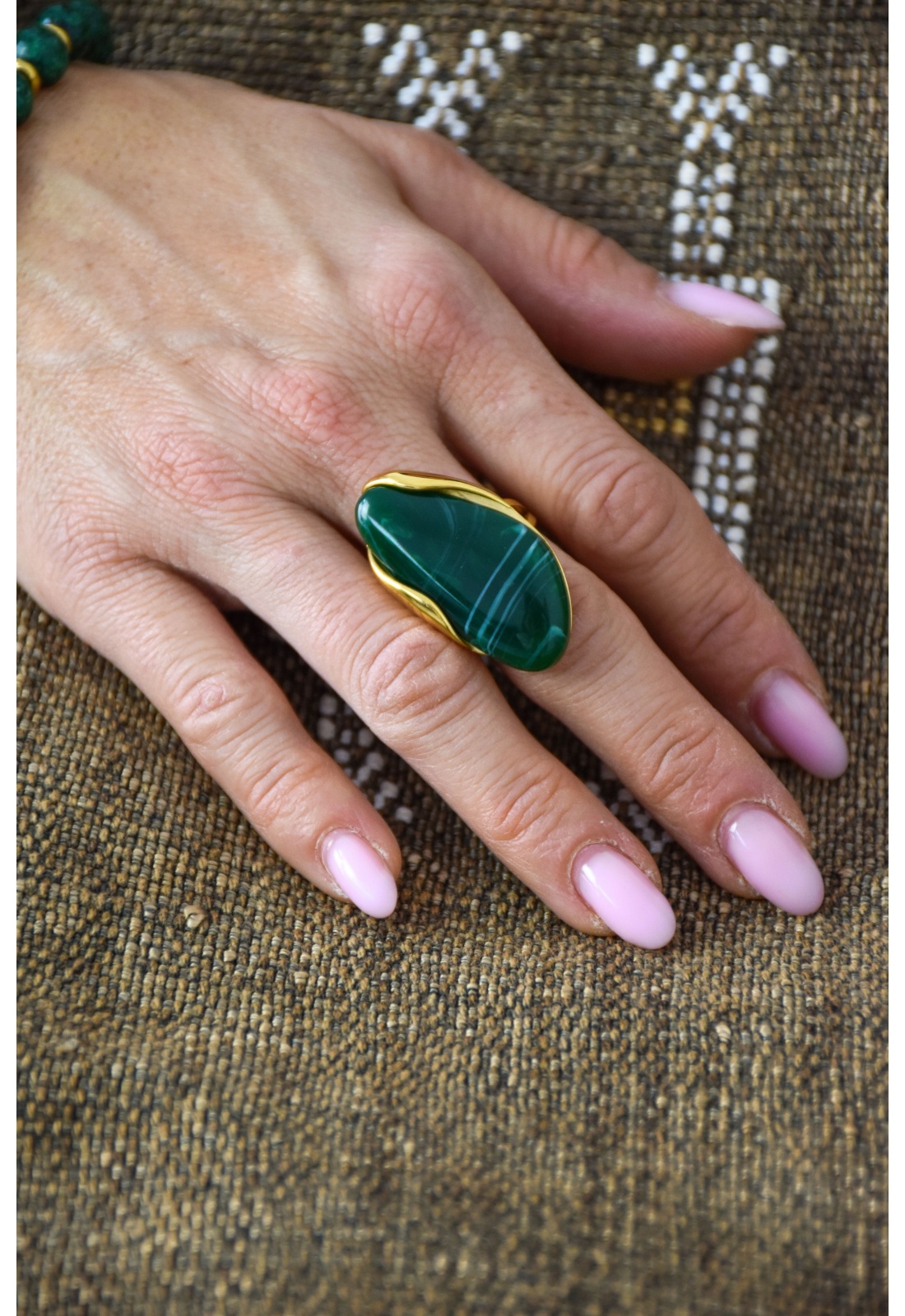 Bague pour femmes.De couleur dorée.Avec pierre verte à effet marbré.Réglable.Composition :100% Acier Inoxydable.