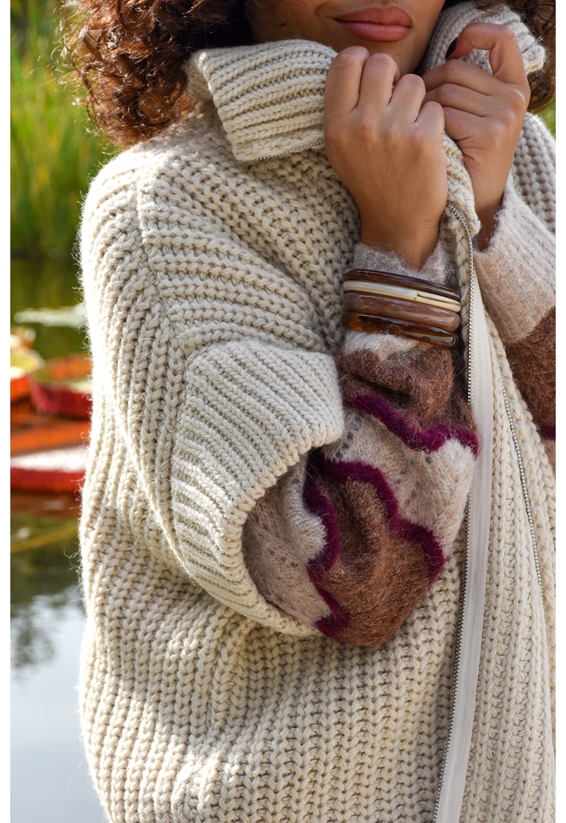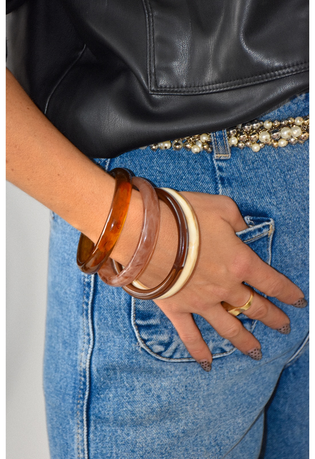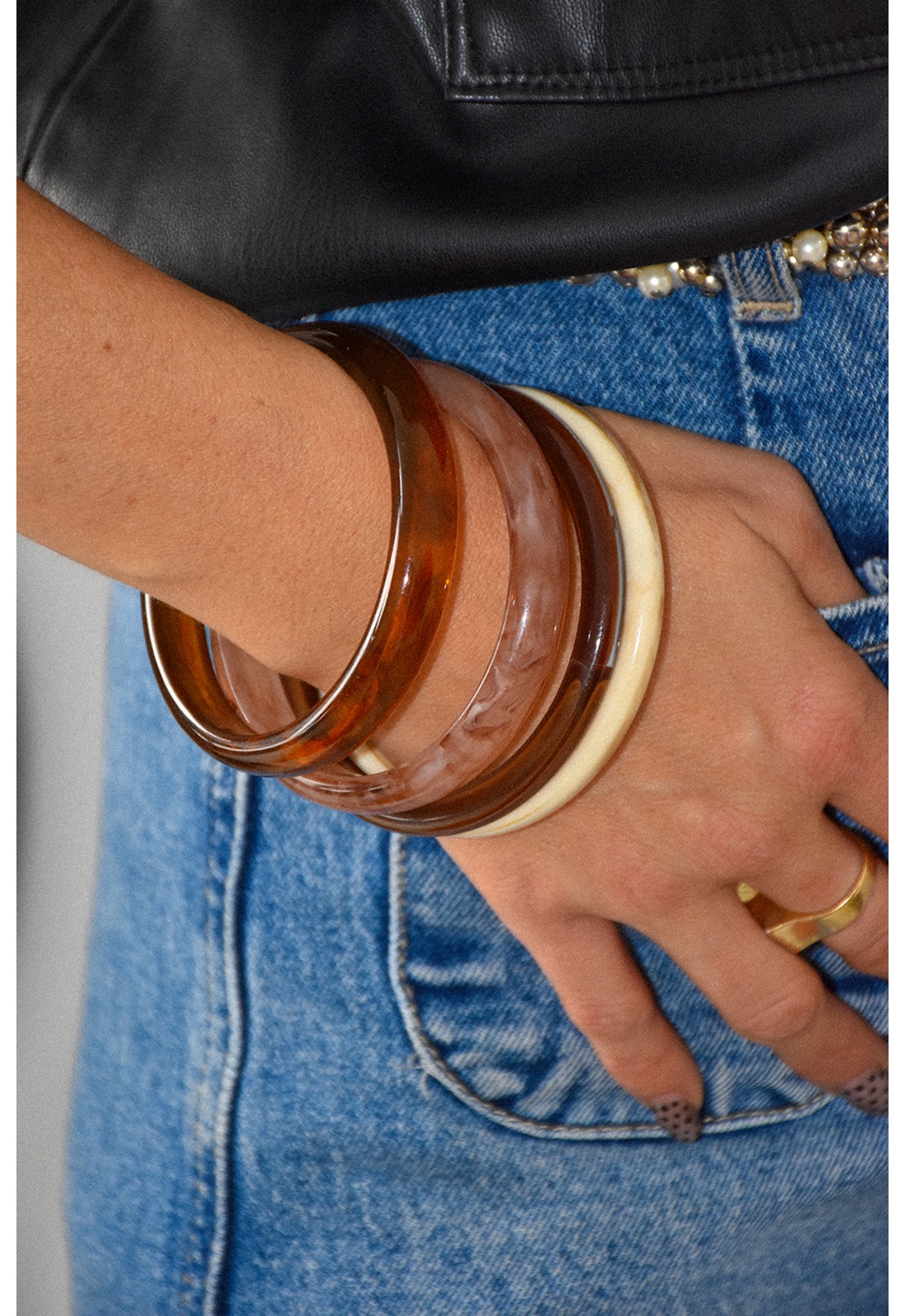 Bracelets pour femmes.Ecru, camel et marron.Effet marbré.En résine.De différentes tailles.Set de 4 unités.