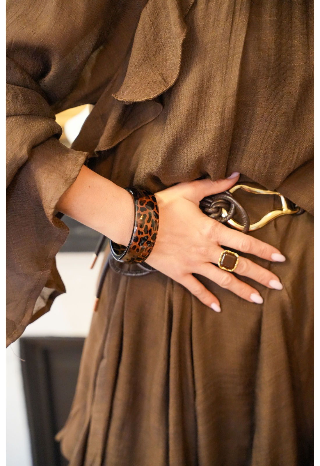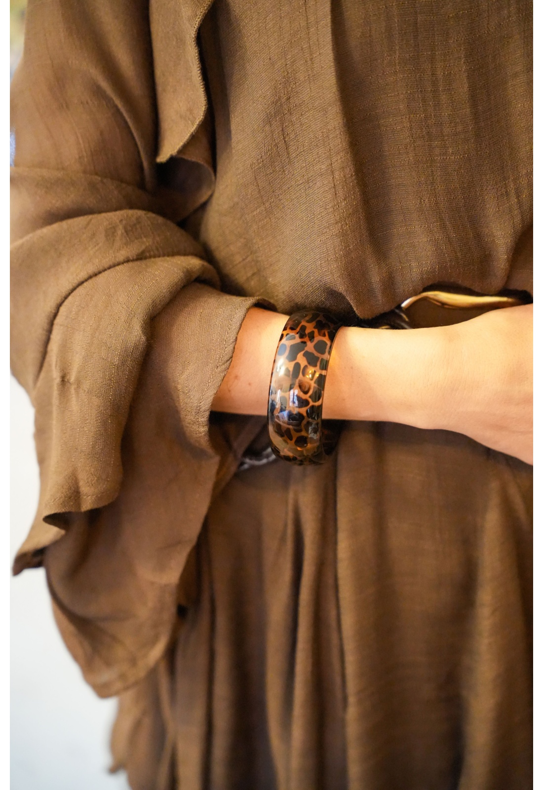 Jonc pour femmes.Motif léopard.Légèrement transparent.En résine.Large.