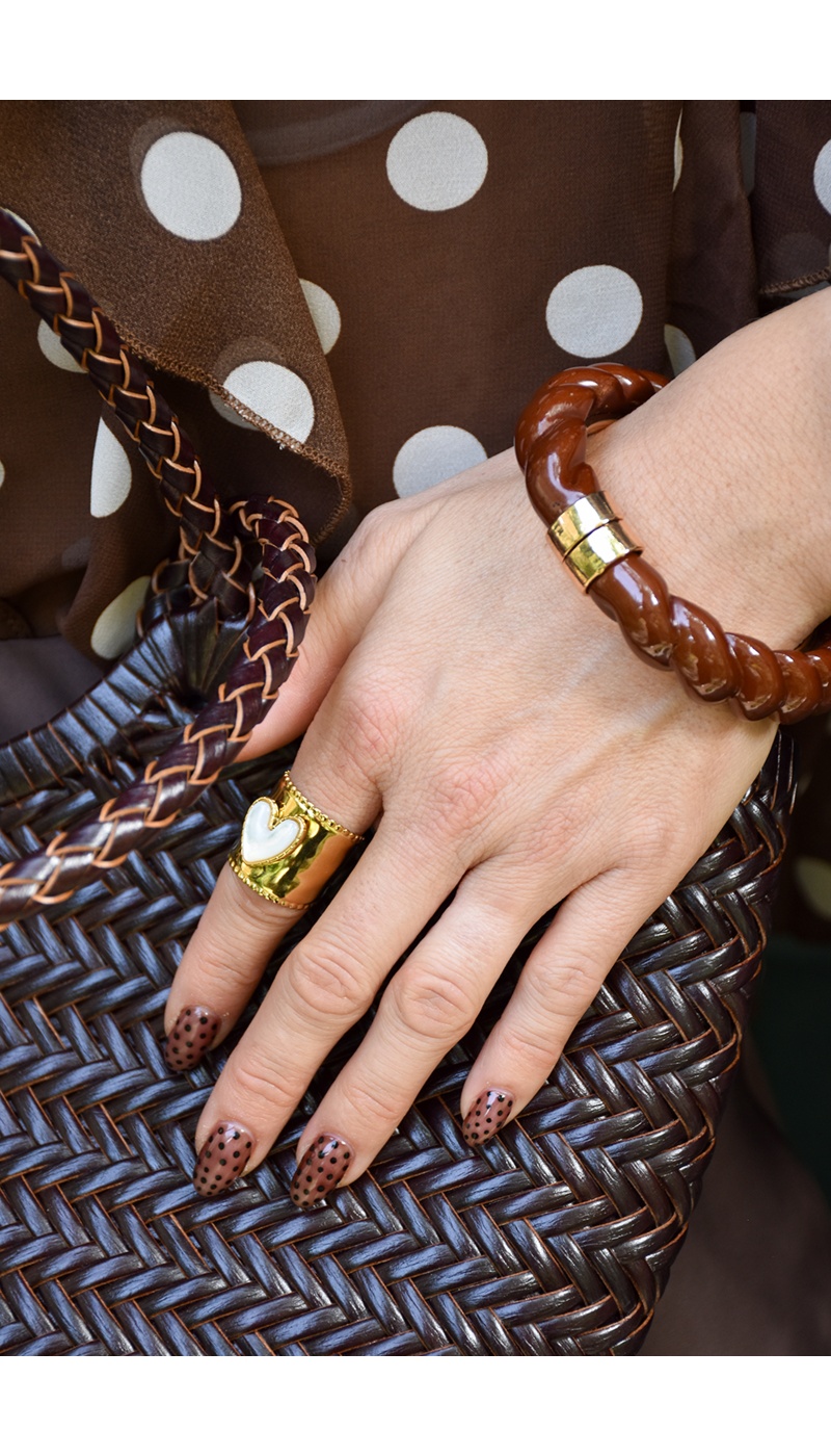 Jonc pour femmes.De couleur marron.En résine torsadée.Détail doré.Fermoir à bascule.