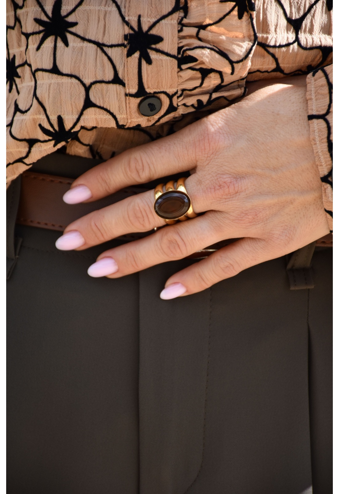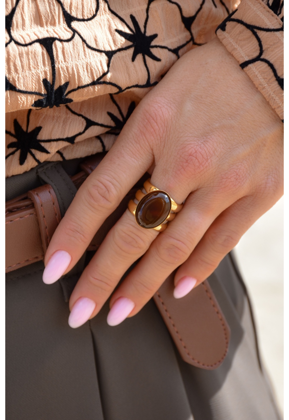 Bague pour femmes.De couleur dorée.Avec pierre marron.Ajustable.Composition :100% Acier Inoxydable.