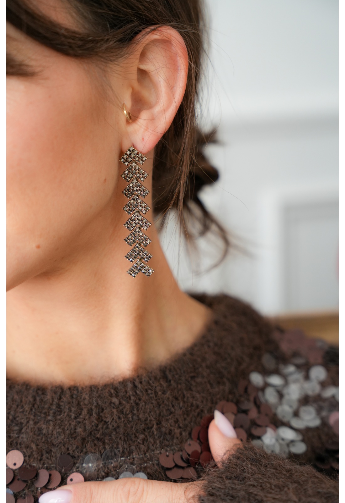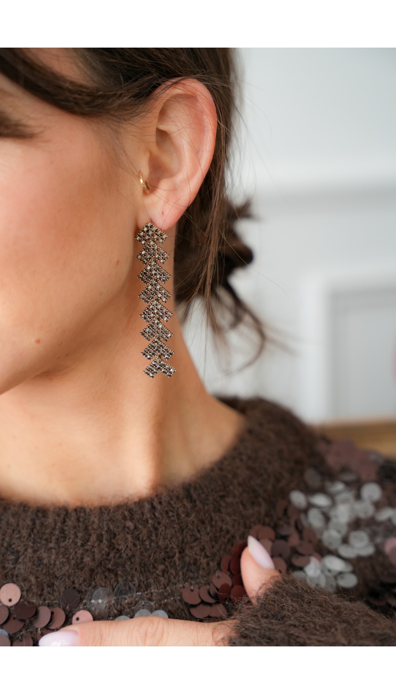 Boucles d'oreilles pour femmes.De couleur dorées.A strass.Pendantes.Composition :100% Acier Inoxydable.