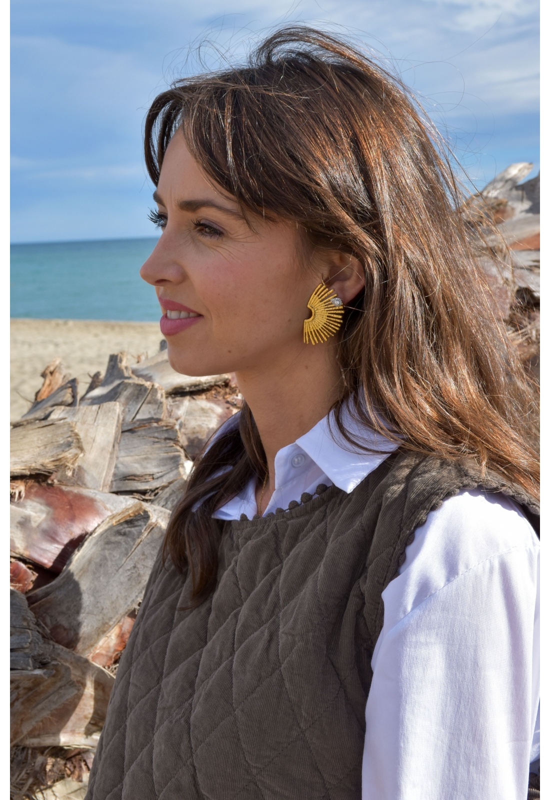Boucles d'oreilles pour femmes.De couleur dorées.Demi soleil.Composition :100% Acier Inoxydable.