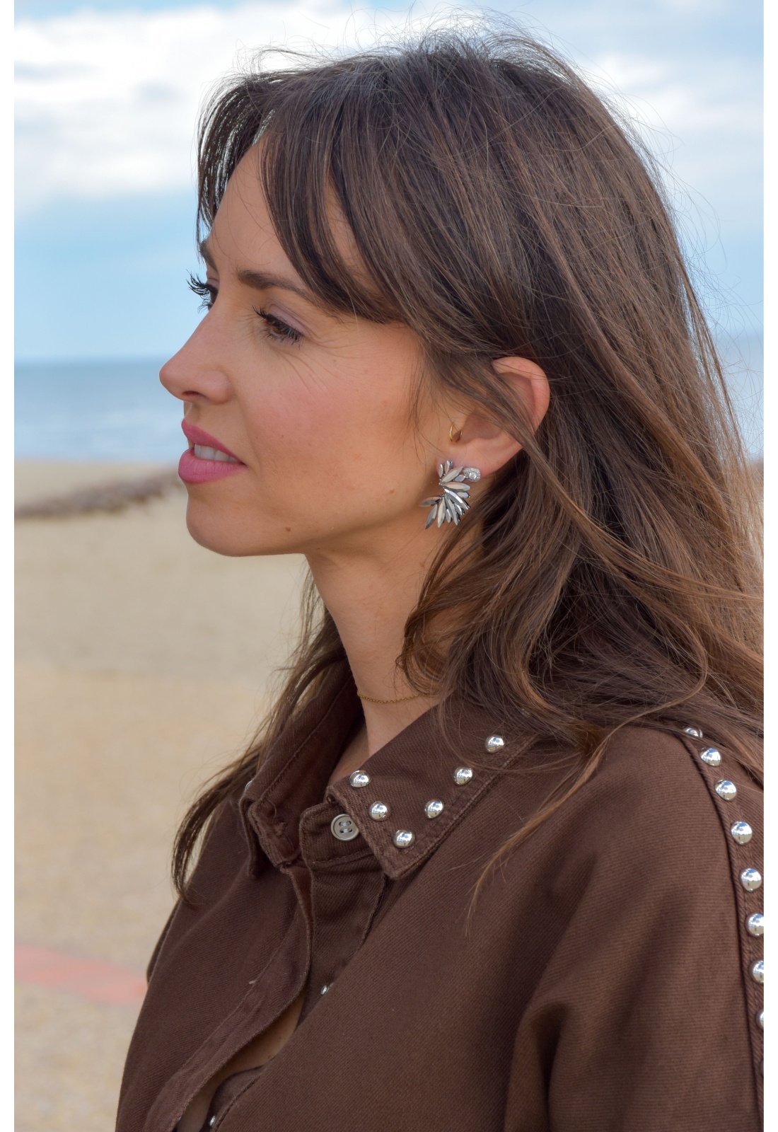 Boucles d'oreilles pour femmes.De couleur argent.A strass.Composition :100% Acier Inoxydable.
