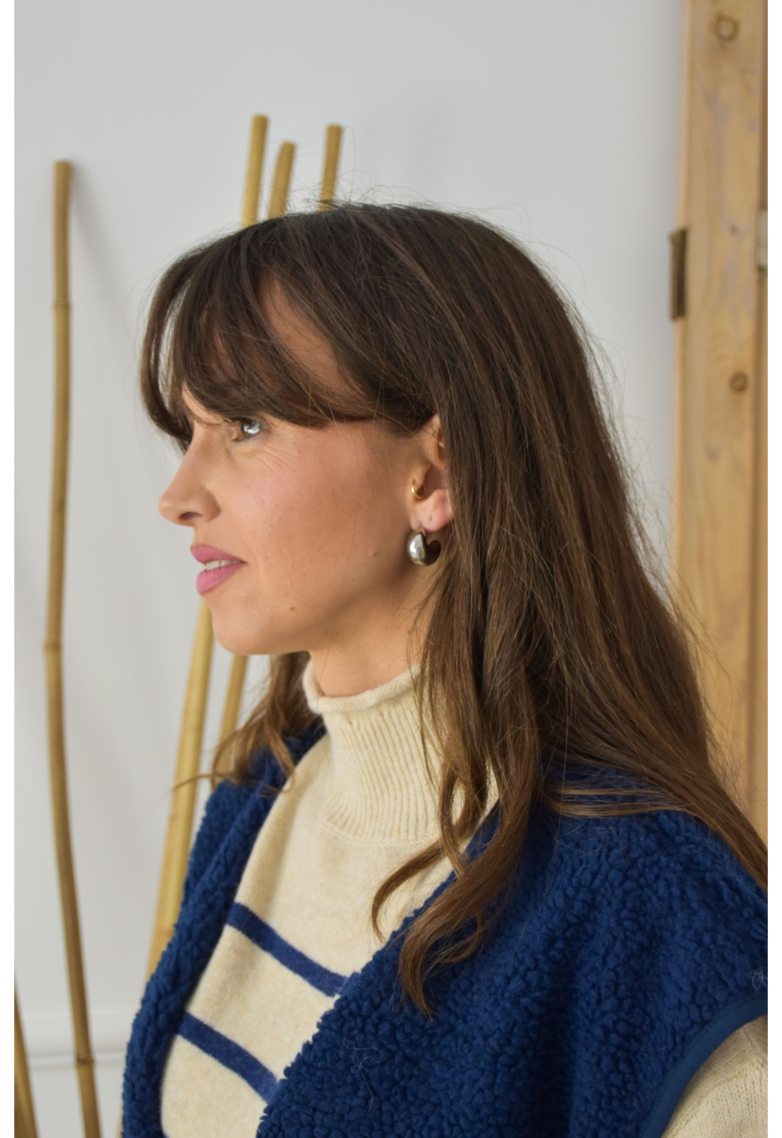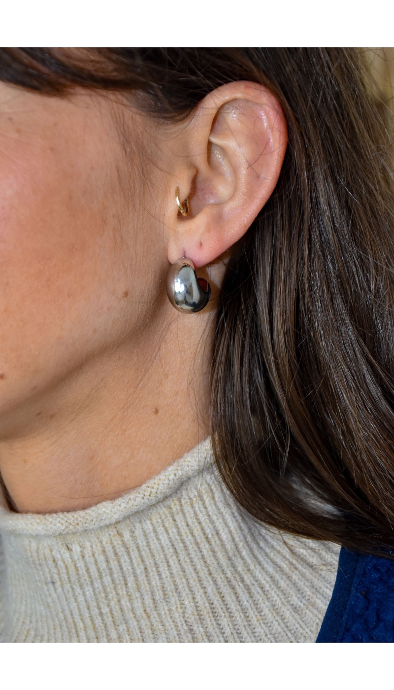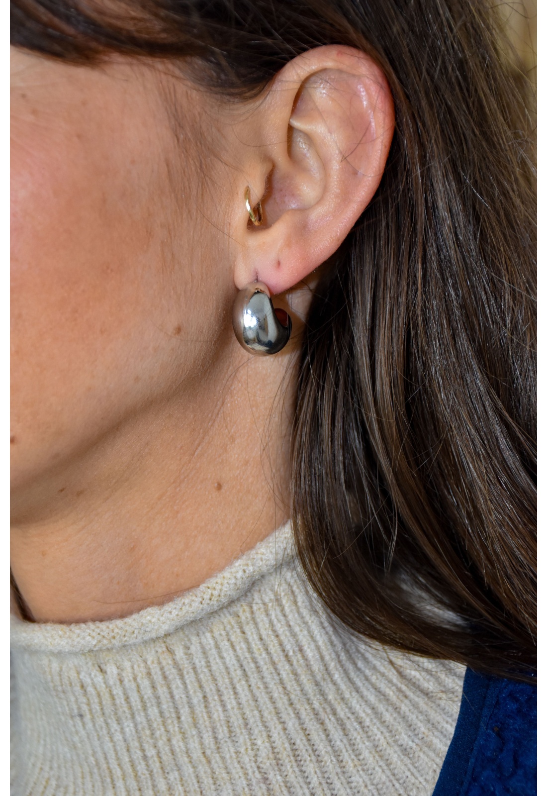 Boucle d'oreilles pour femmes.De couleur argent.Petites créoles épaisses.