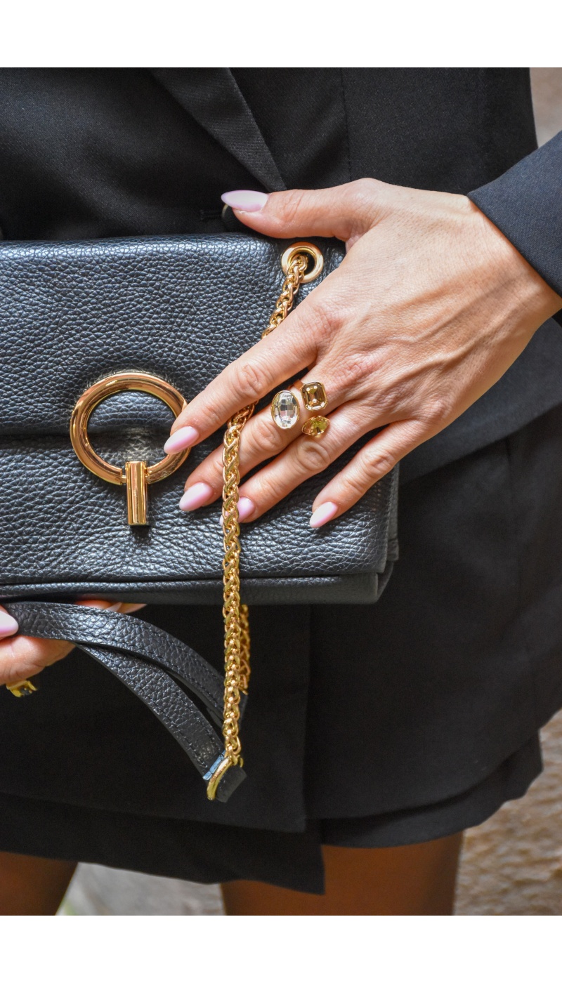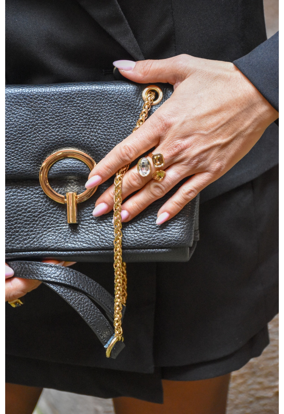Bague pour femmes.De couleur dorée.Avec 3 strass.Ajustable.Composition :100% Acier inoxydable.