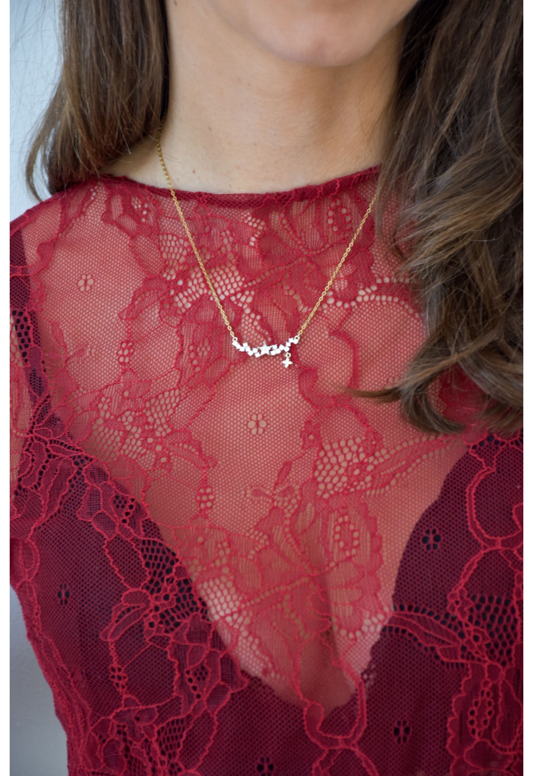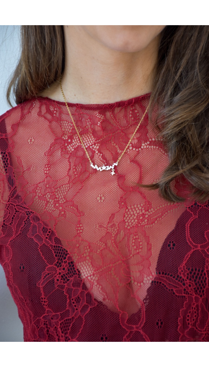 Collier pour femmes.De couleur dorée.Avec petites étoiles en strass.Ajustable sur plusieurs niveaux.Composition :100% Acier Inoxydable.