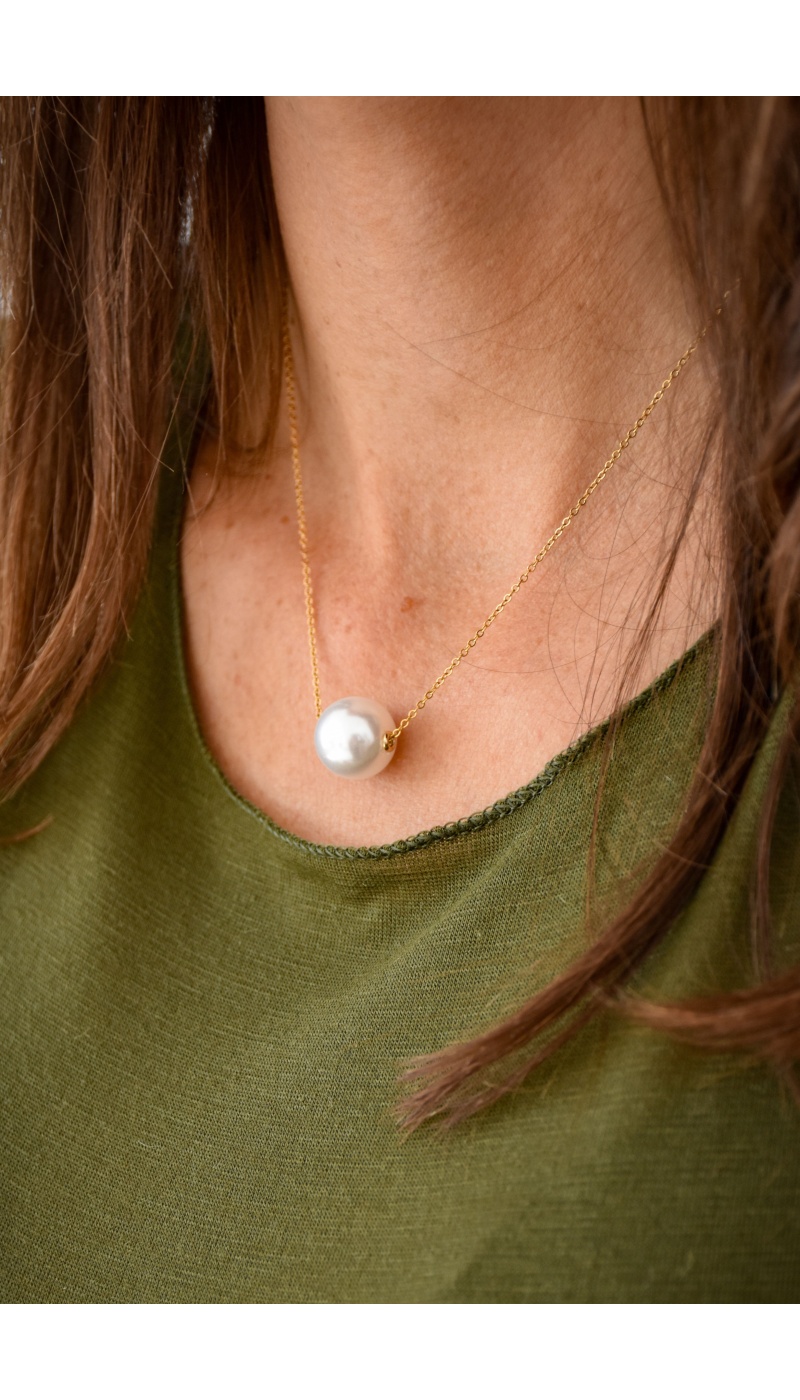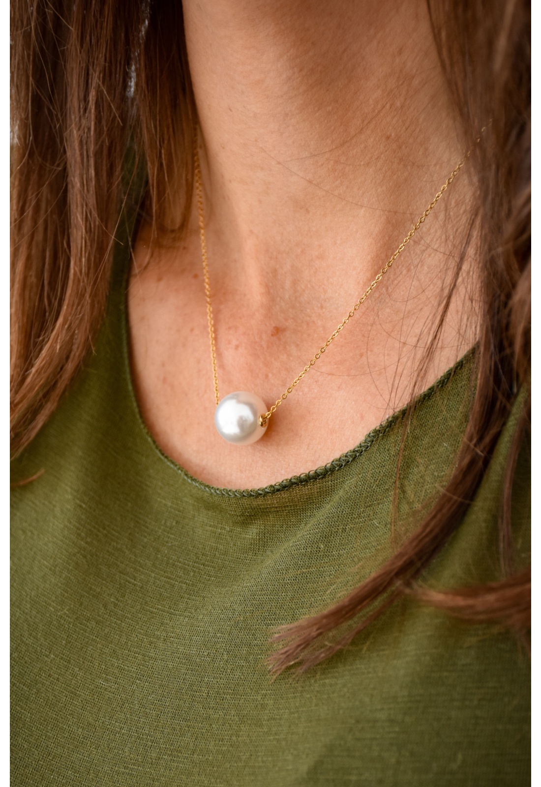 Collier pour femmes.De couleur doré.Avec un pendentif perle nacrée.Ajustable sur plusieurs niveaux.Composition :100% Acier Inoxydable.