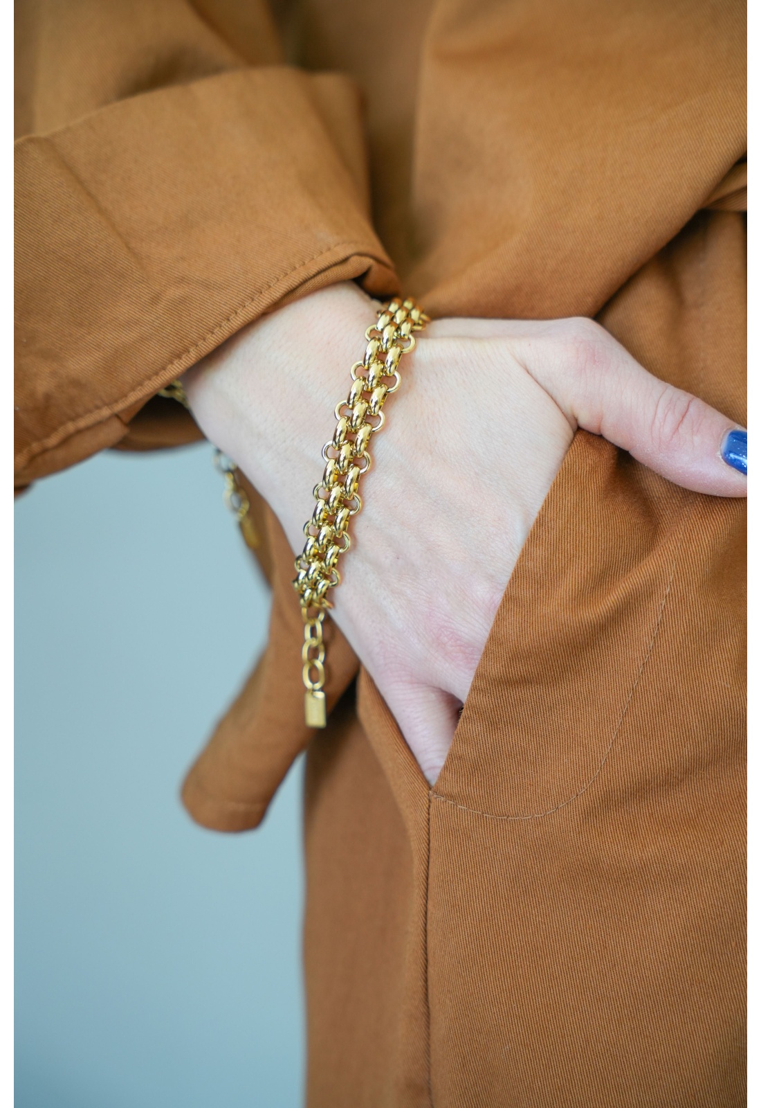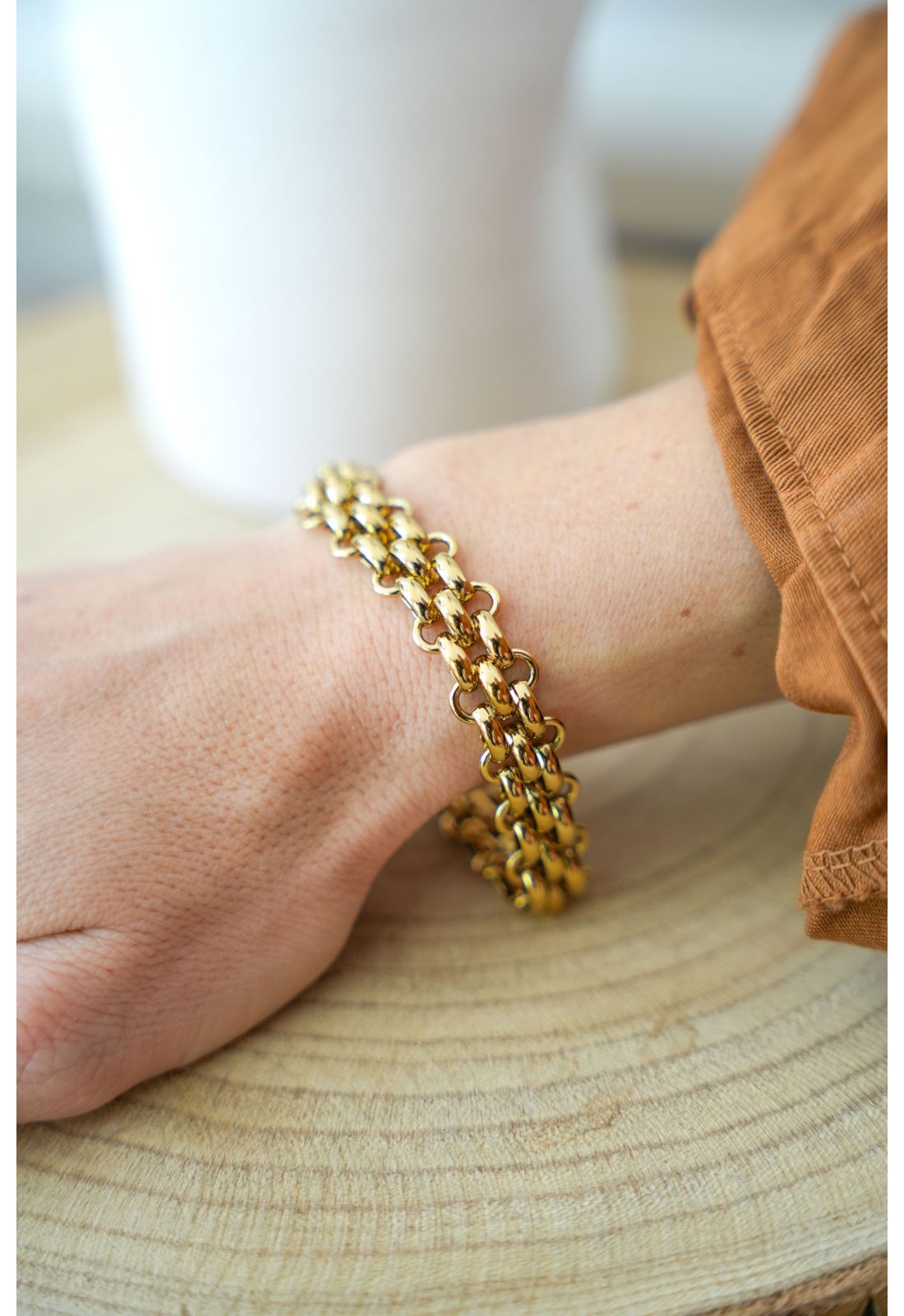 Bracelet femme réglable.Maille dorée