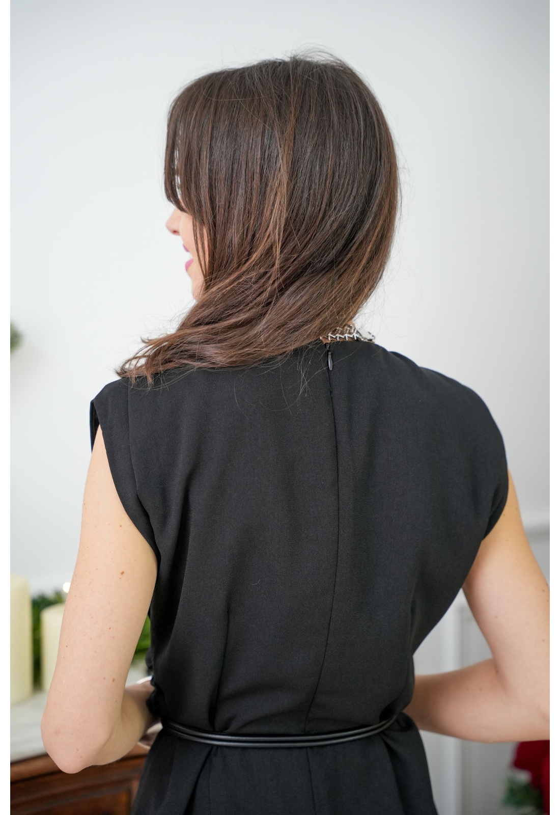 Robe pour femmes.De couleur noire.De chez Vero Moda.Col rond.Sans manches.Avec épaulettes.Coupe évasée.Froncée à la taille.Courte.Se ferme par zip au dos.Composition :100% Polyester.La mannequin porte une taille XS et mesure 160cm.