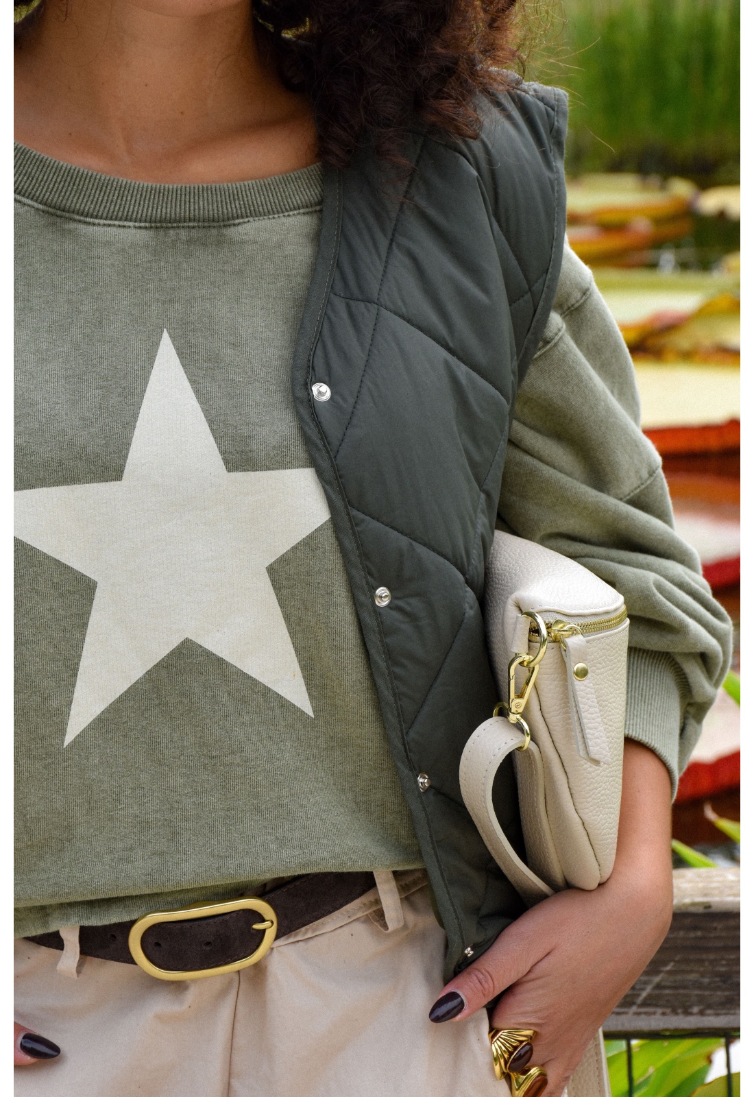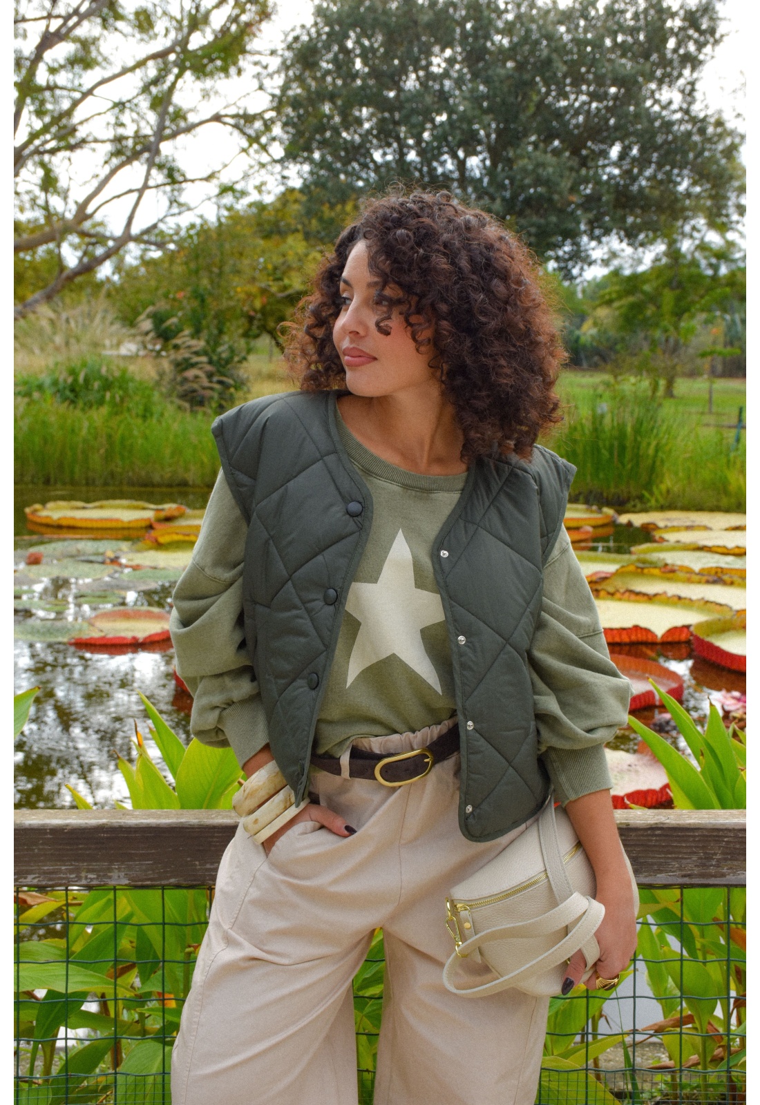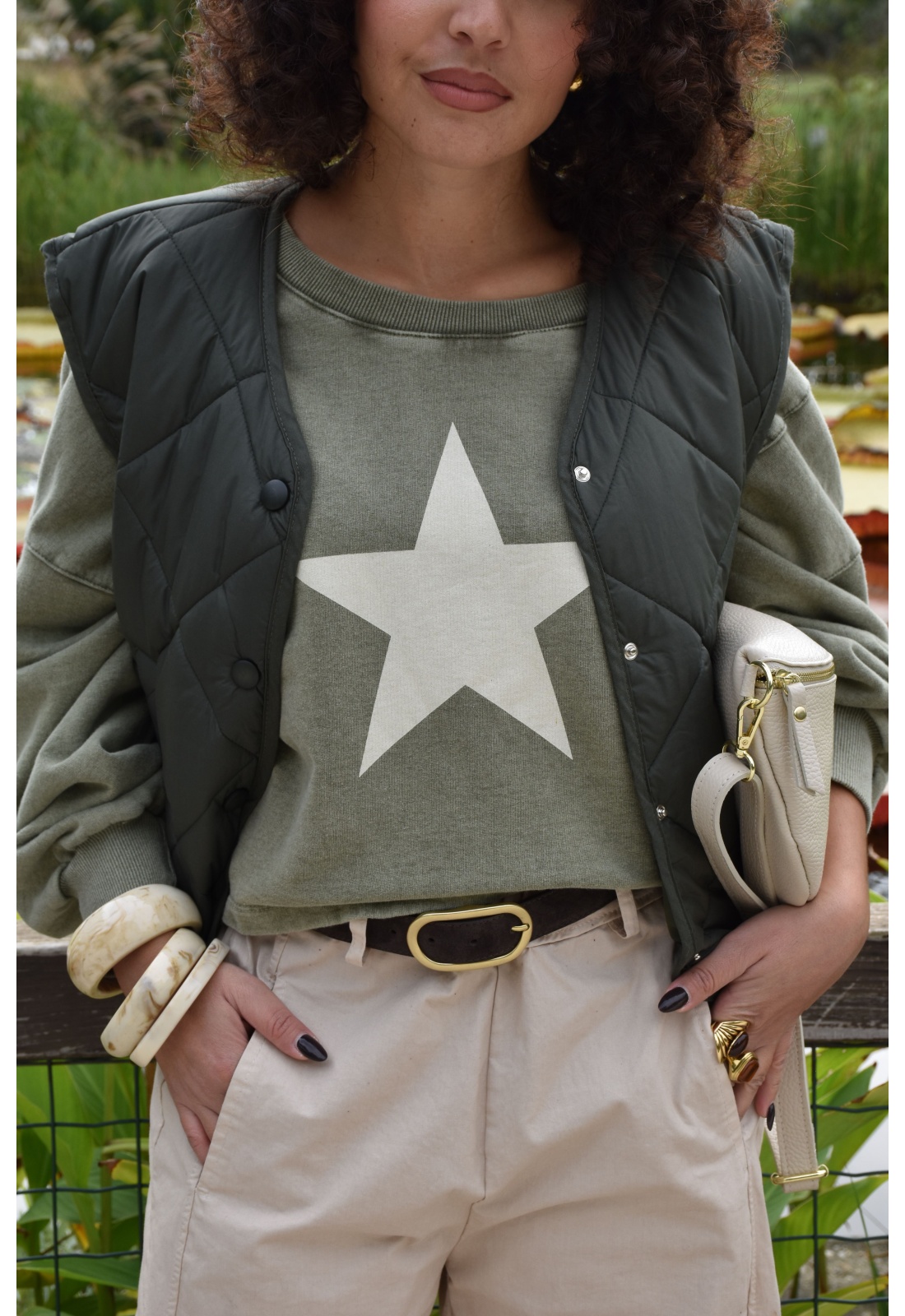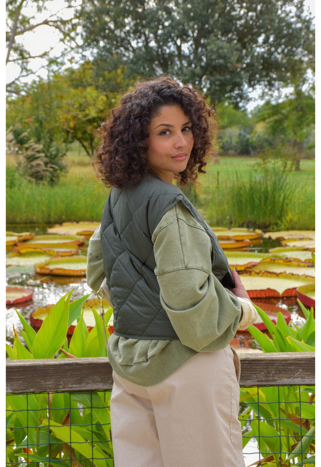 Veste matelassée kakiCol rondSans manchesFermeture par bouton pressionPoches avant plaquée
