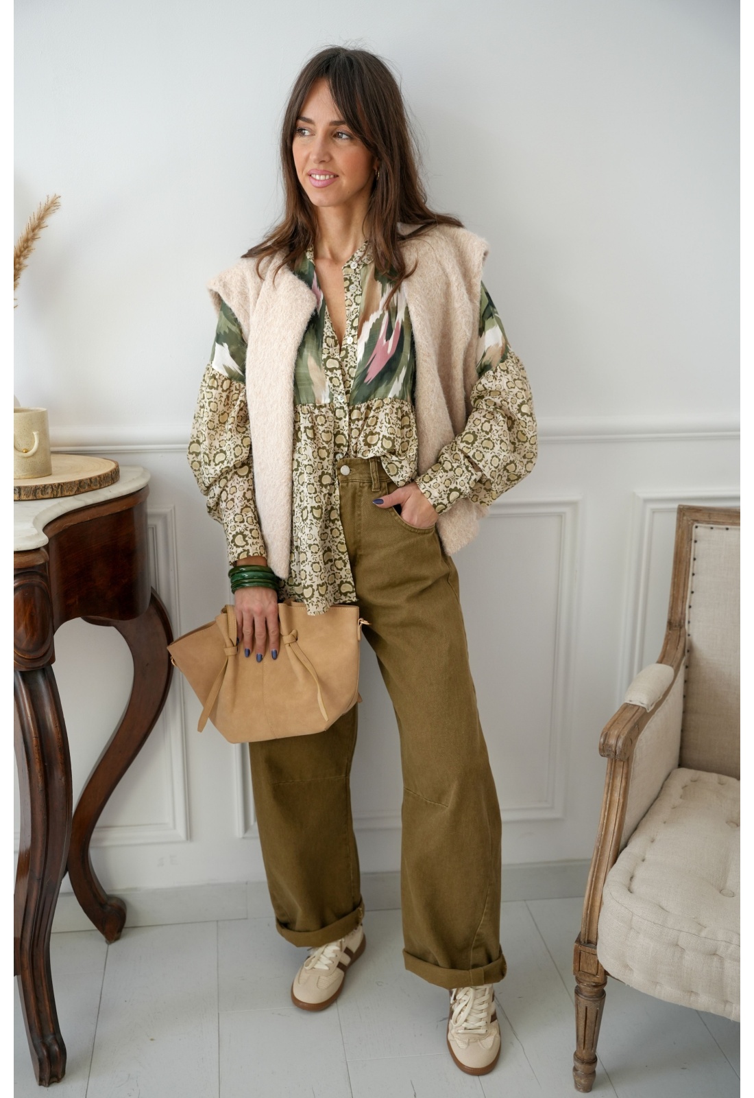 De couleur kaki.En jean.De marque Johanna ParisCoupe ballon, ample.Poches latérales.Composition :100% Coton.Fabriqué en Italie.La mannequin porte une taille S et mesure 160cm.