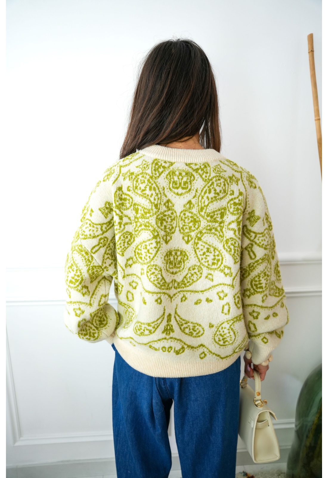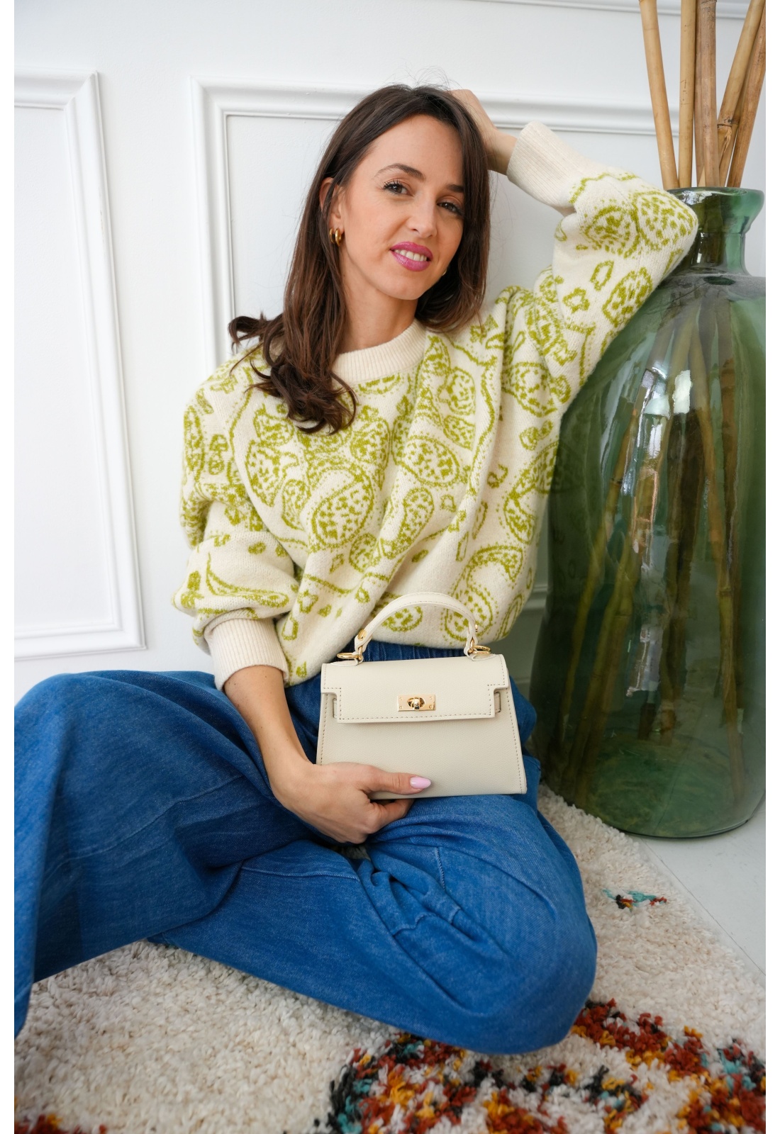 De couleur ecru.En laine.Manches longues.Coupe oversize.Extrémités cotelées.Composition :22% Polyester.74% Acrylique.4% Elasthanne.Fabriqué en Italie.La mannequin porte une taille XS-S et mesure 160cm.