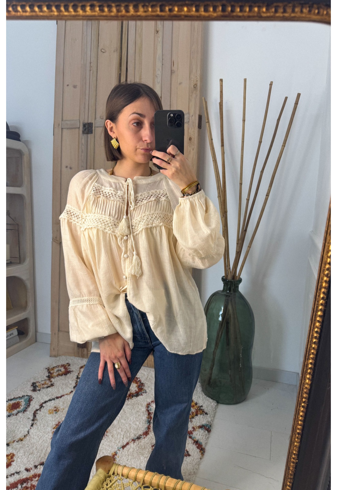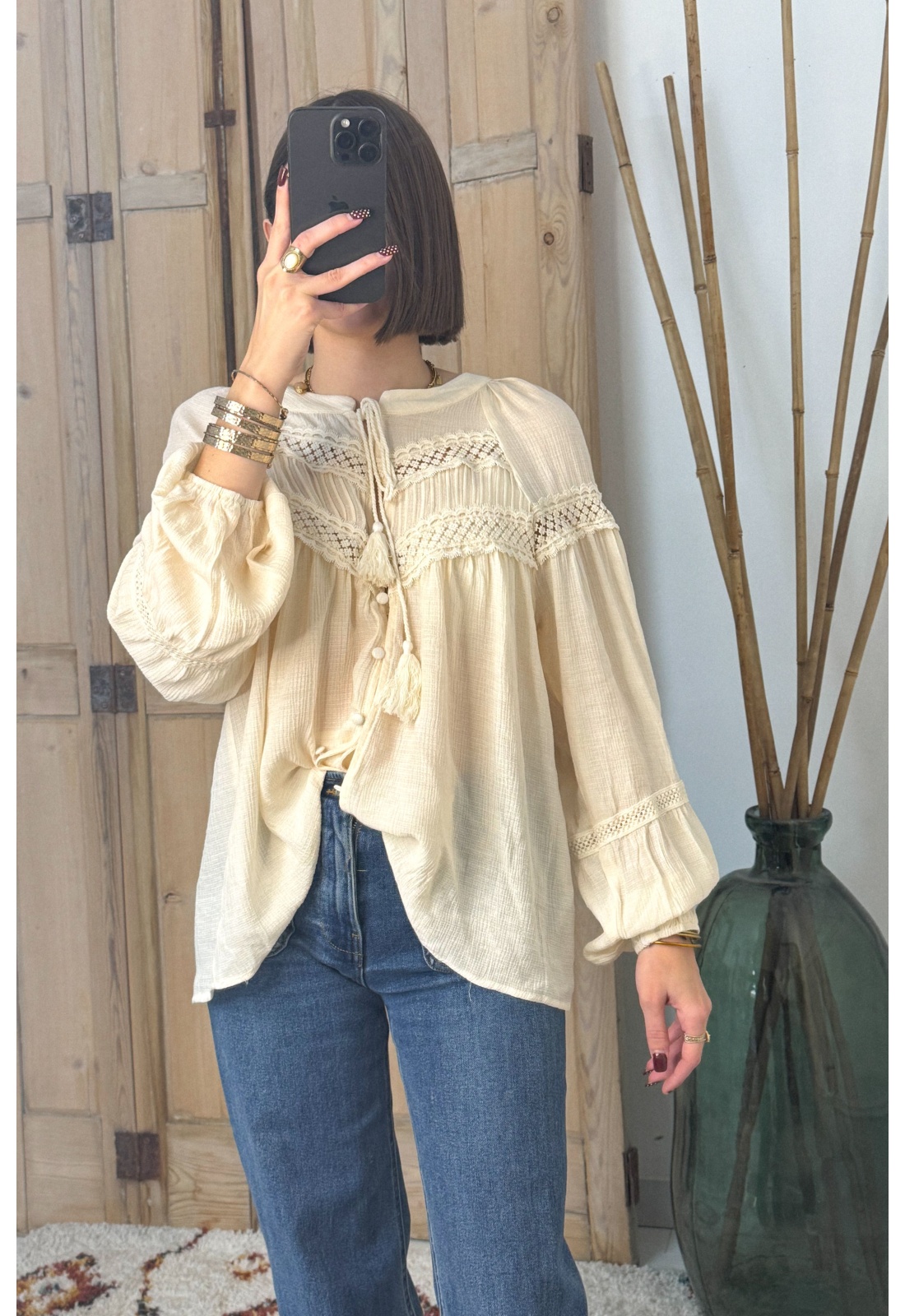 Blouse Broderie Beige BOHO