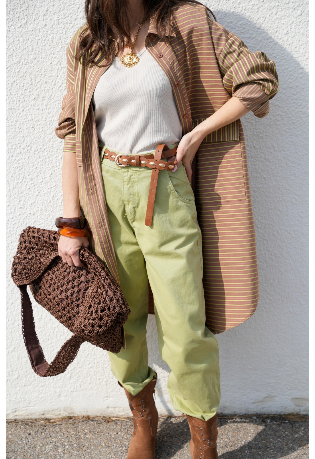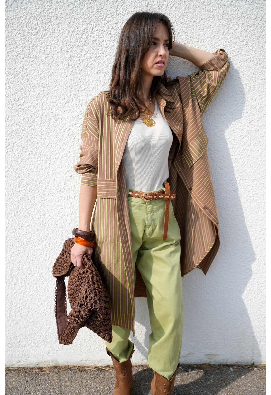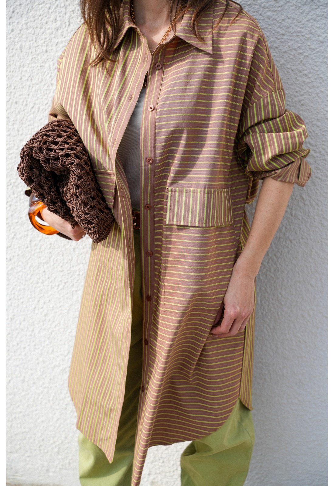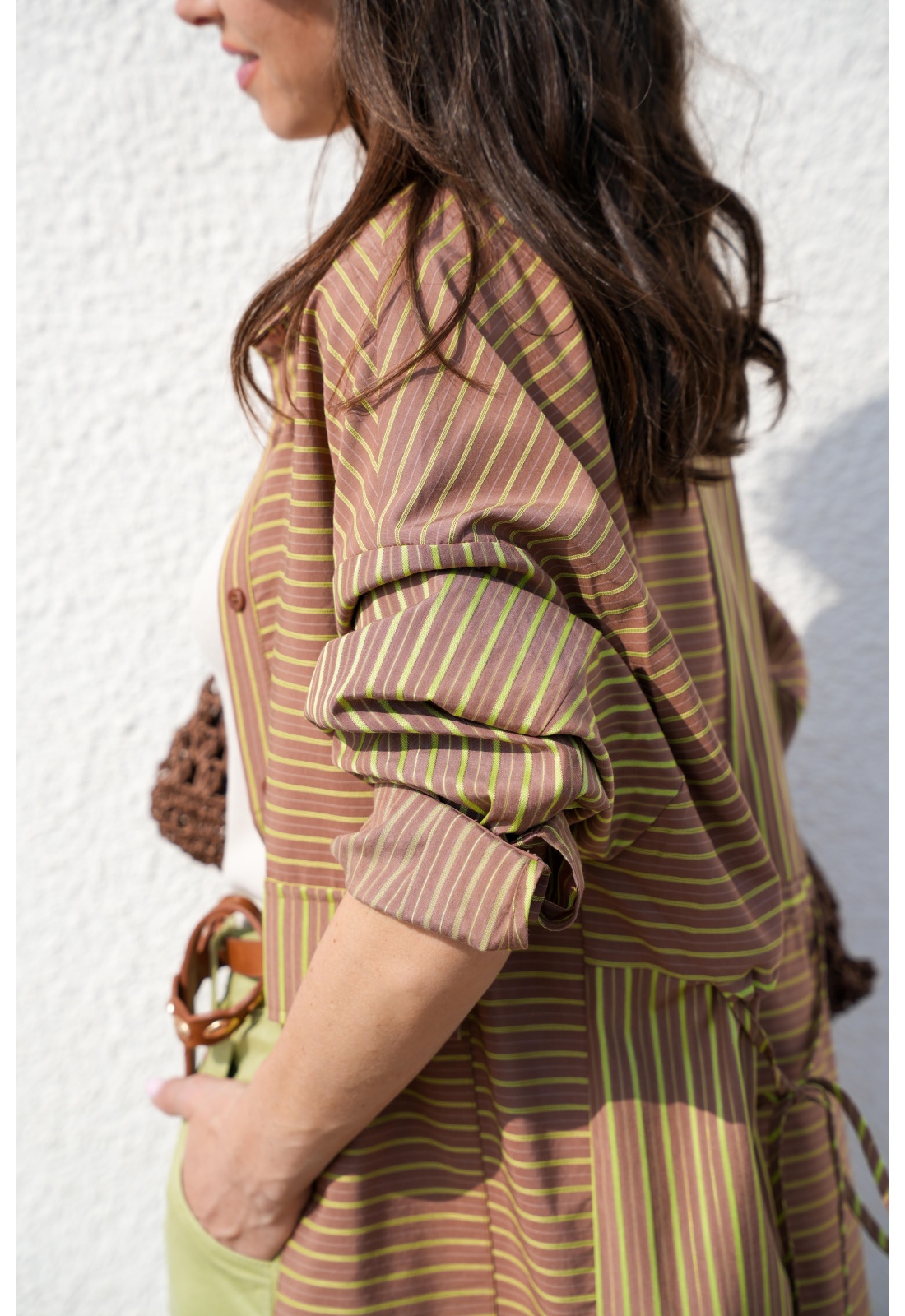 Fond marron rayée verte.