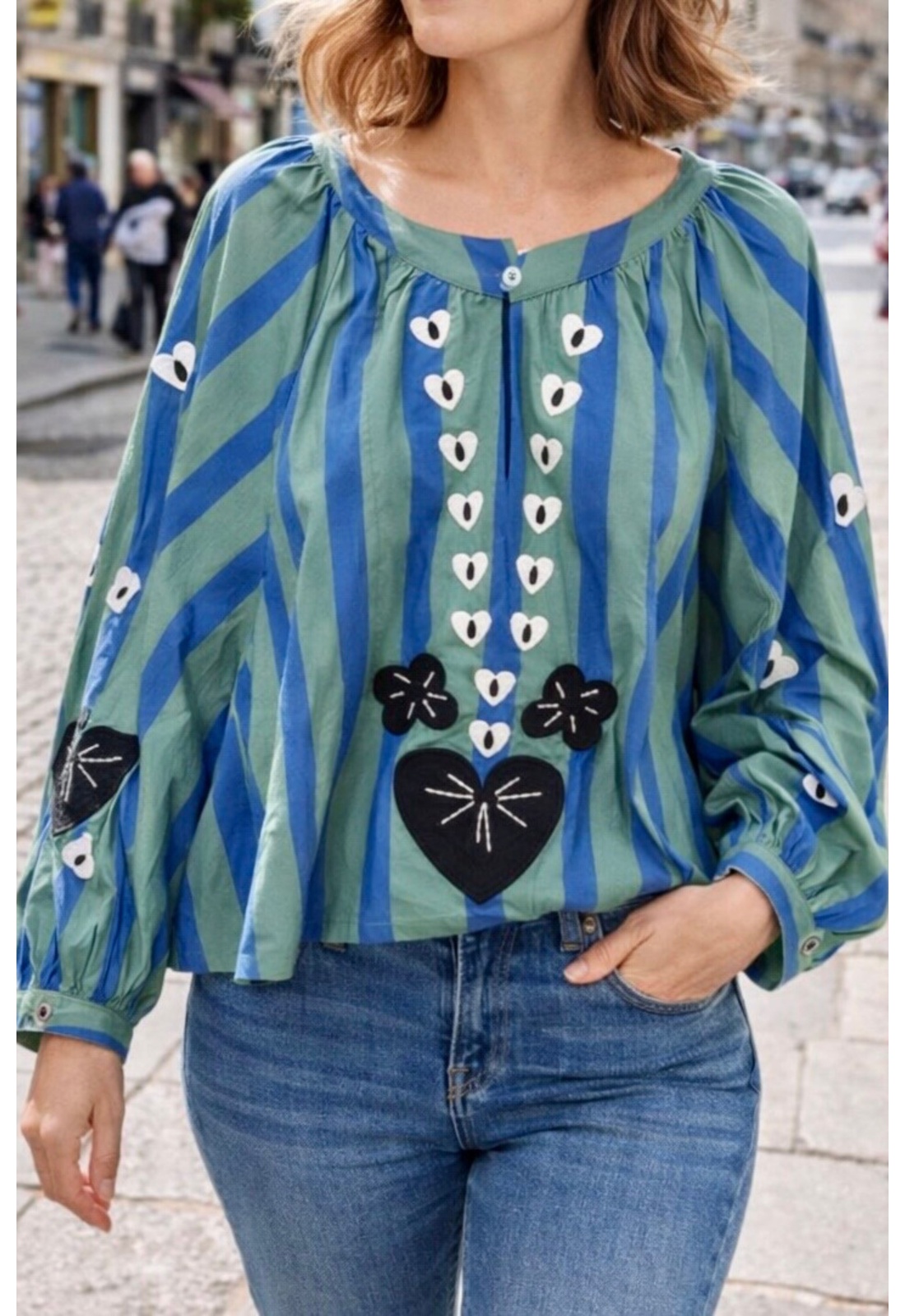 Blouse Rayée Bleue Coeur TANIA
